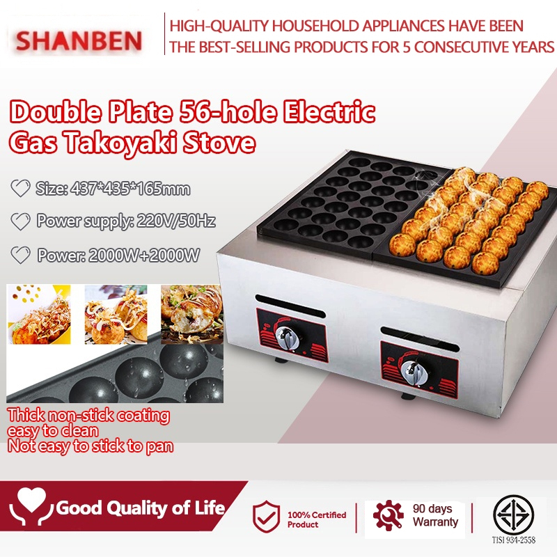 SHANBEN Heavy Duty Takoyaki Machine Maker Fishball Grill 56 Holes Gas/Electric Fish Grill