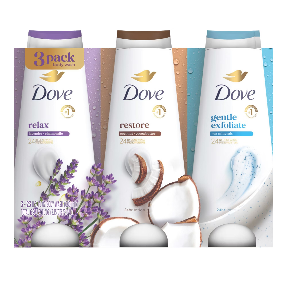 Dove Relaxing, Gentle Exfoliating & Restoring Body Wash [3 x 680mL]