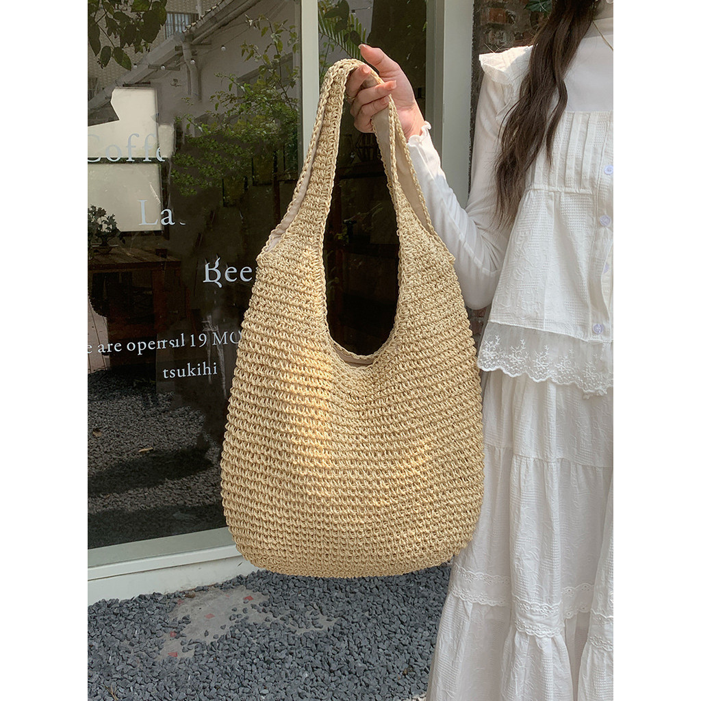 Ielgy Original Holiday Style Straw Woven Shoulder Tote Bag Large Capacity Casual Portable Woven Bag