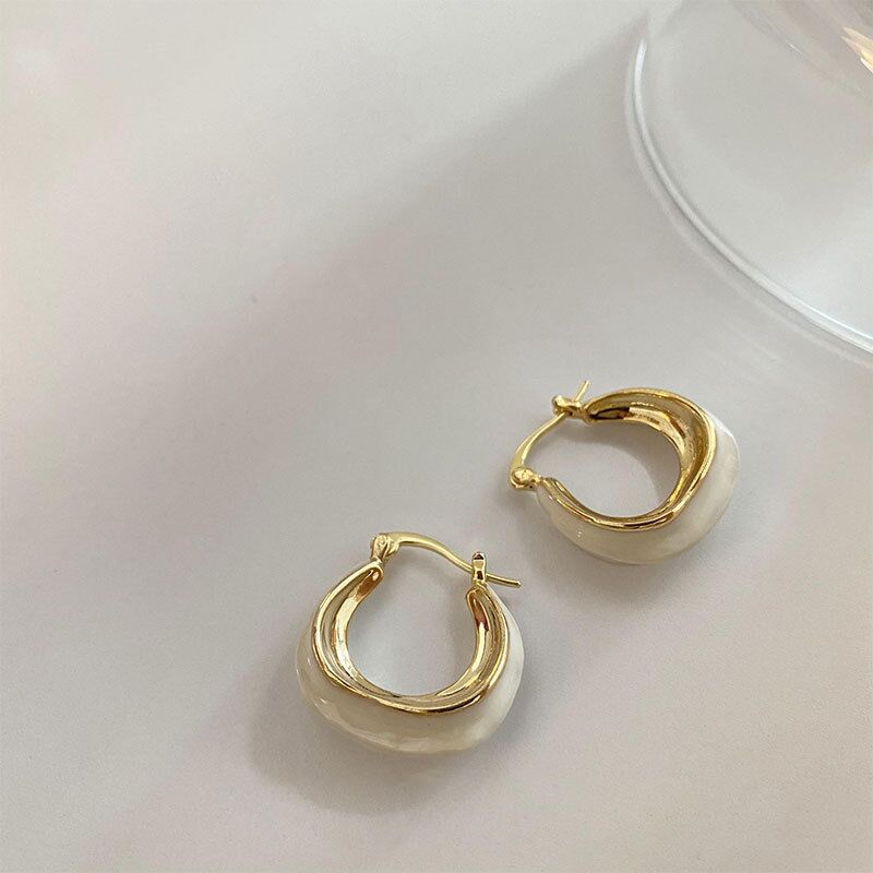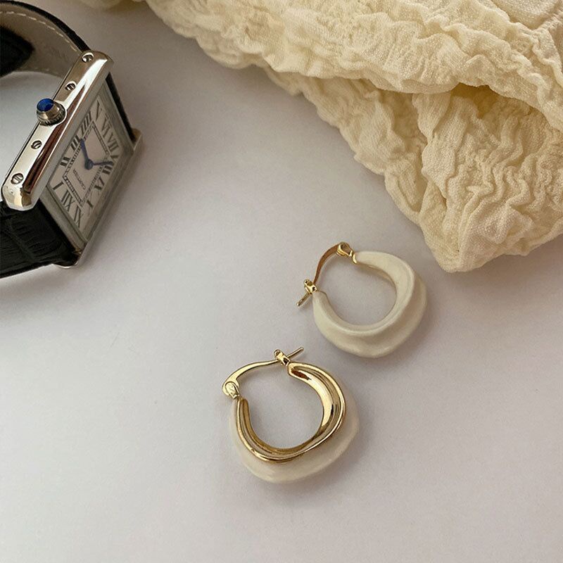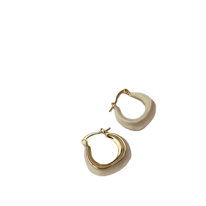 Korean cream white drip glaze French circle earrings women