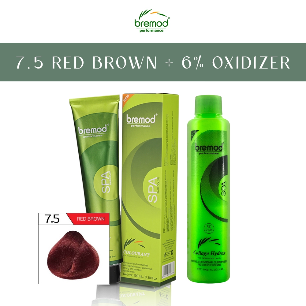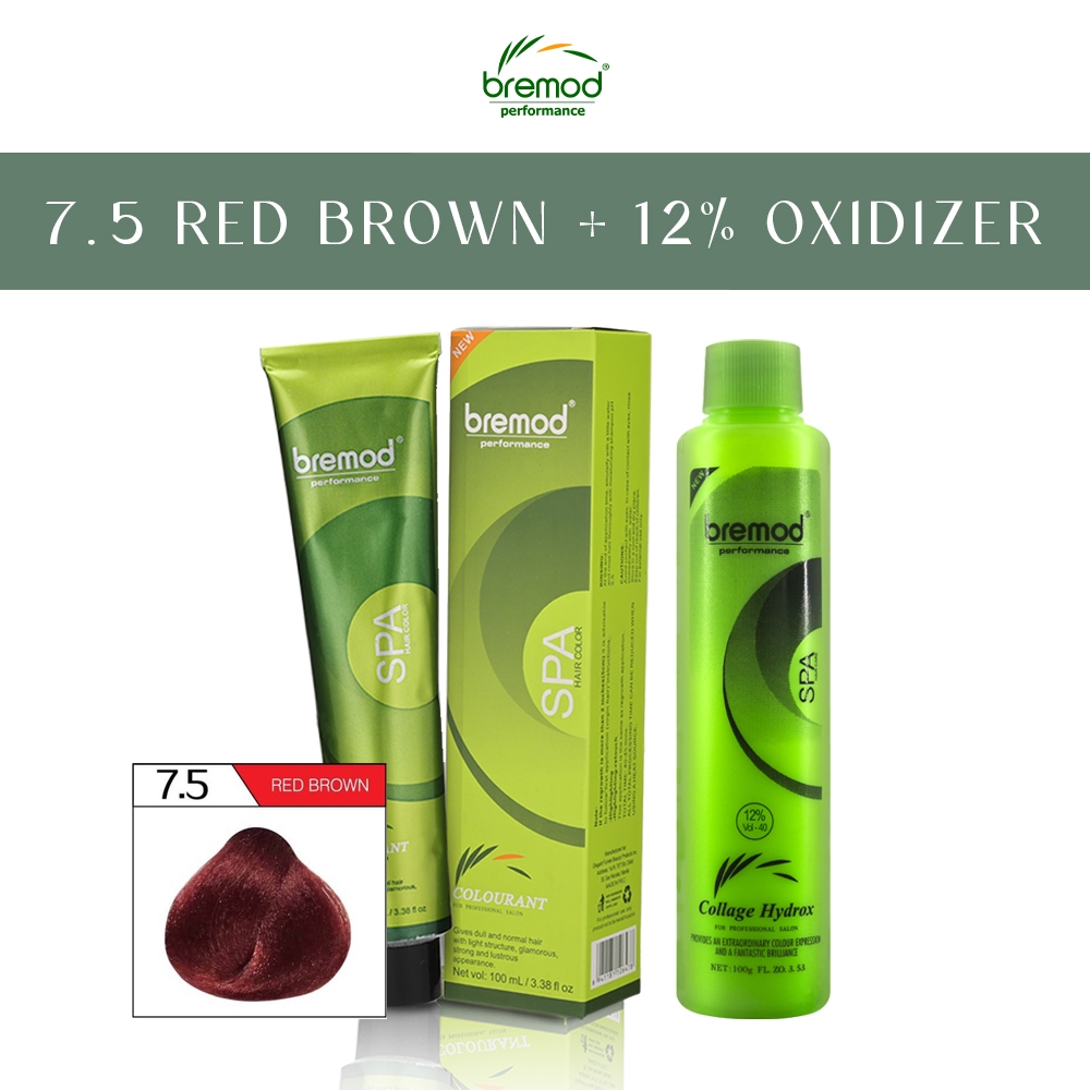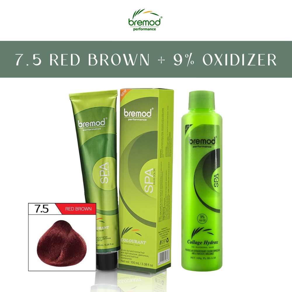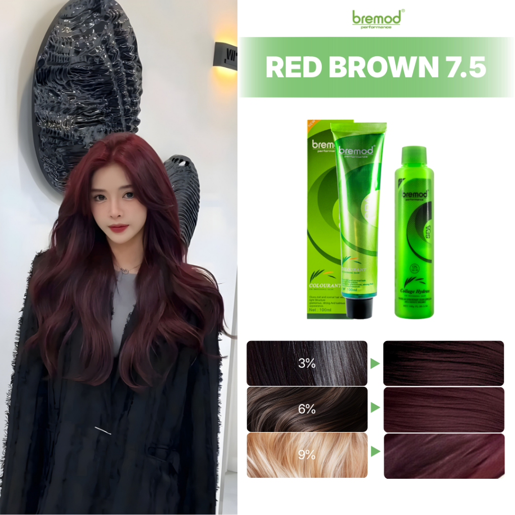 Bremod Hair Color Red Brown 7.5 Hair With Oxidizing Cream 6% 9% 12% Hair Color Dye 100ml