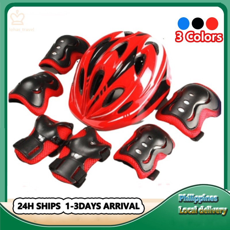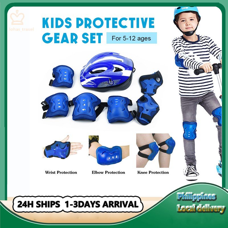 Kids Helmet Knee 7Pcs Protective Gear Set /Skating Safety Gear Wrist Guard Elbow Pad Knee Protector