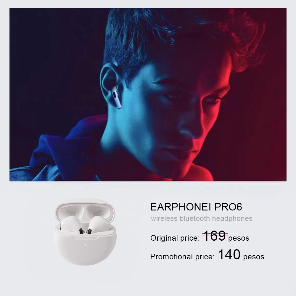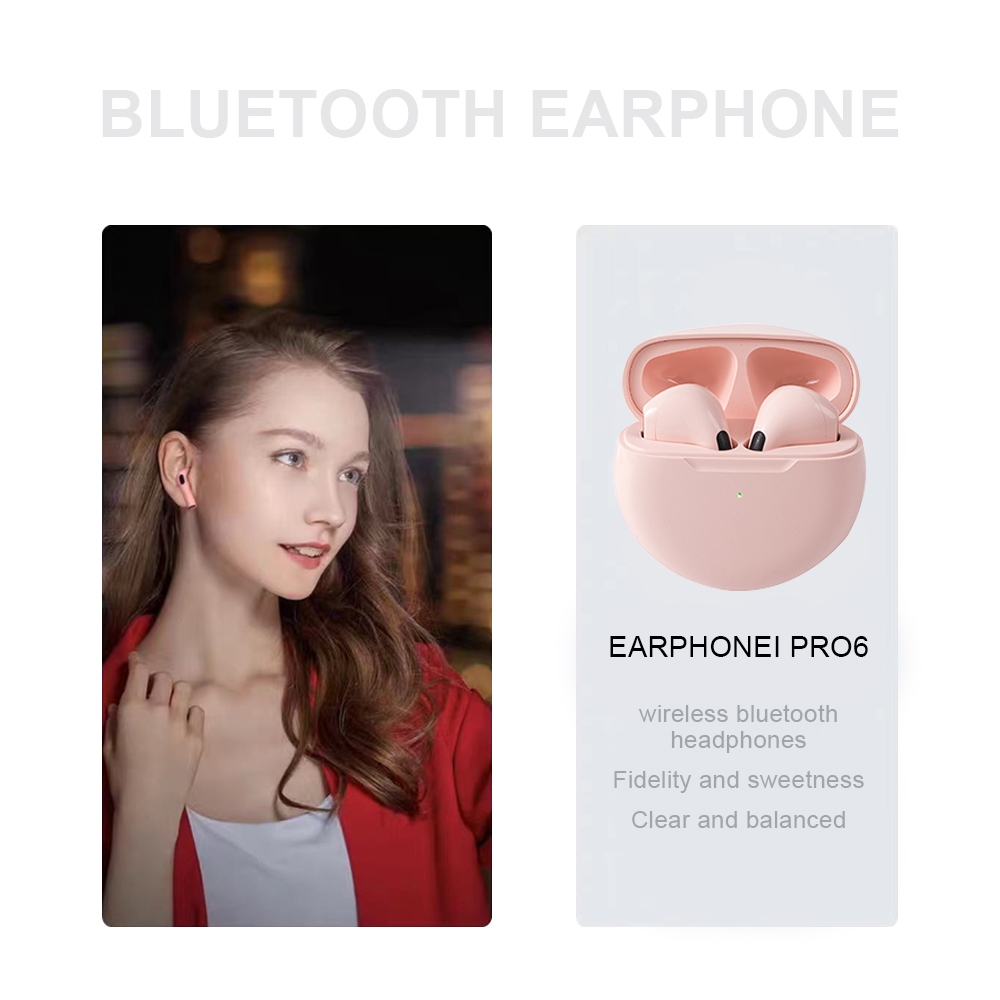 Pro6 TWS Wireless Bluetooth Earphones Build-in Mic Earbuds Touch Control Headset Latest Design Heard