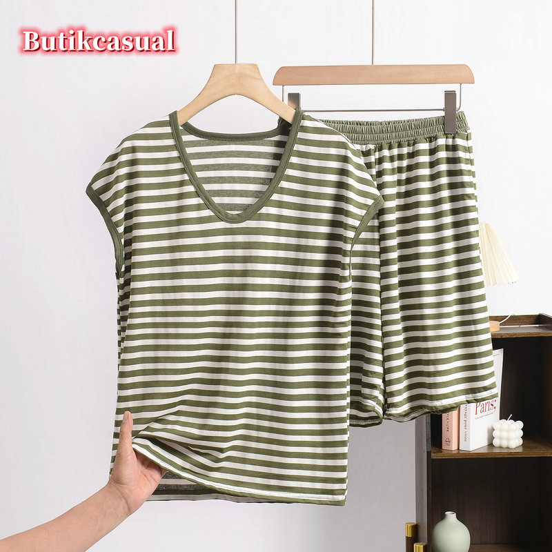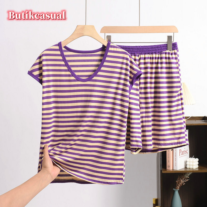 women Modal pajamas set 2025 summer thin casual comfortable short-sleeved shorts 2pcs loungewear