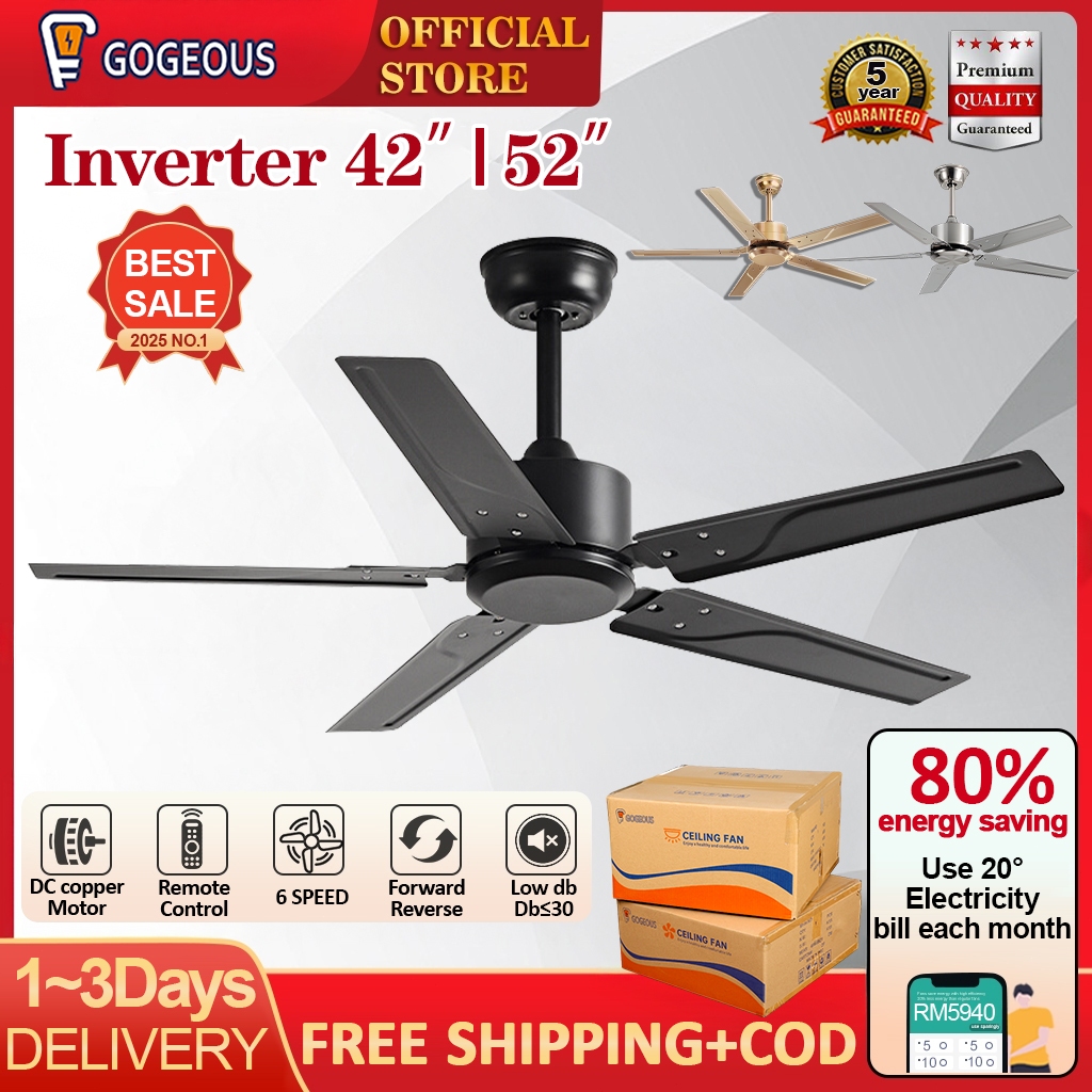 GOGEOUS Stainless Steel Ceiling Fan With Light 42/48/52 Inch DC Motor 5 blade Ceiling fans big size