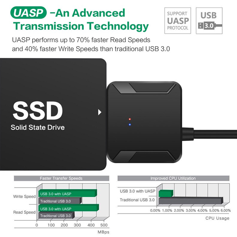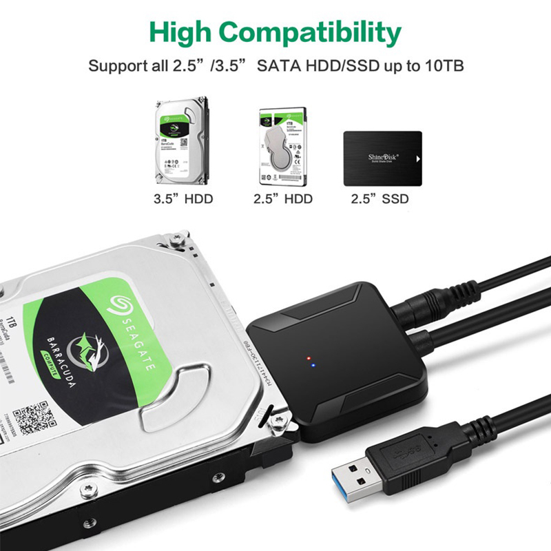 USB 3.0 To Sata Converter Cable With DC Power Adapter USB 3.0 Hard Driver Adapter Support 2.5 3.5