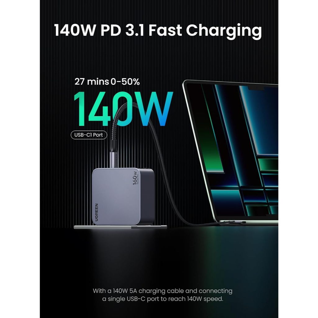【CN Original】UGREEN Nexode Pro 160W GaN USB C Laptop Charger, 4-Port PD 3.1 PPS Fast Charger for IP 17/16/15/14/13/12/11/X Series