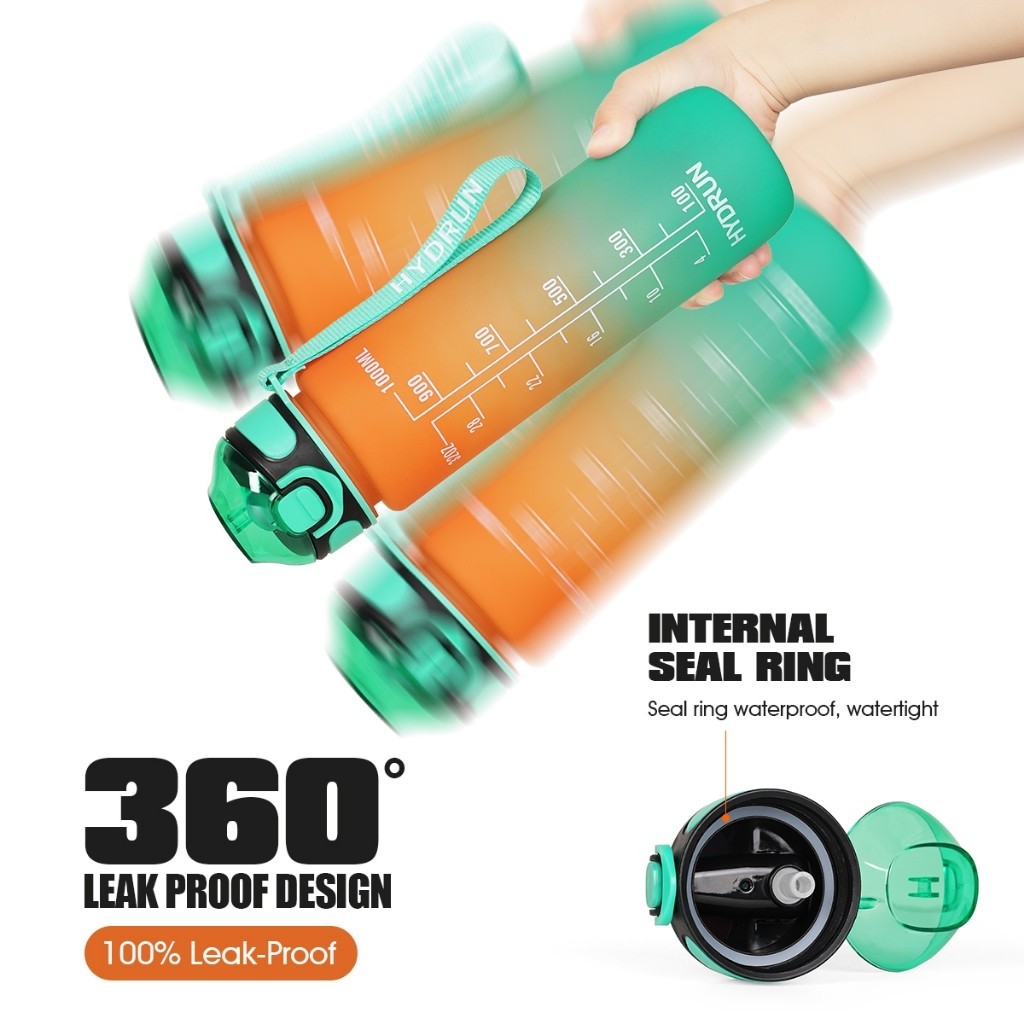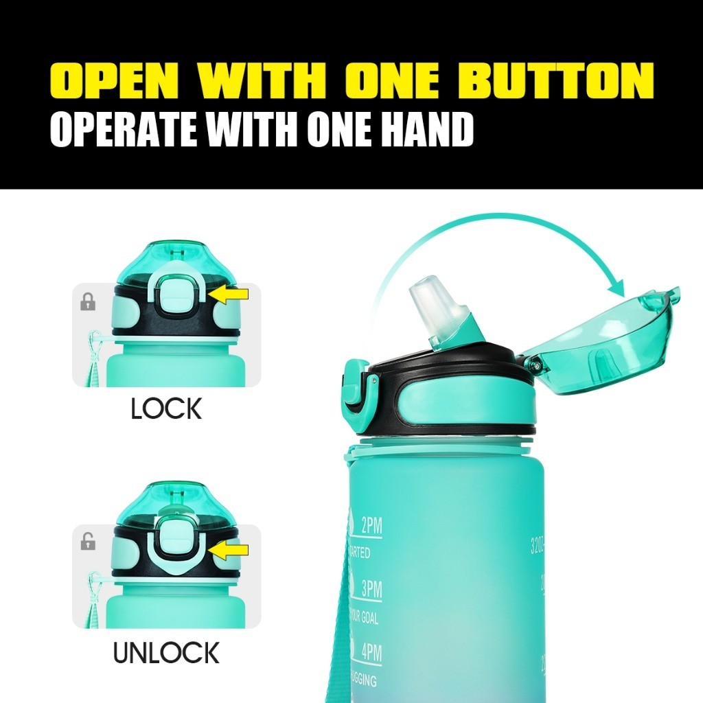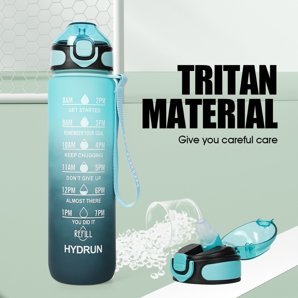 Tumbler 1 Liter Water Bottle Fitness Sports Motivation Time Marker and Straw 32 Ounces Easy to Clean