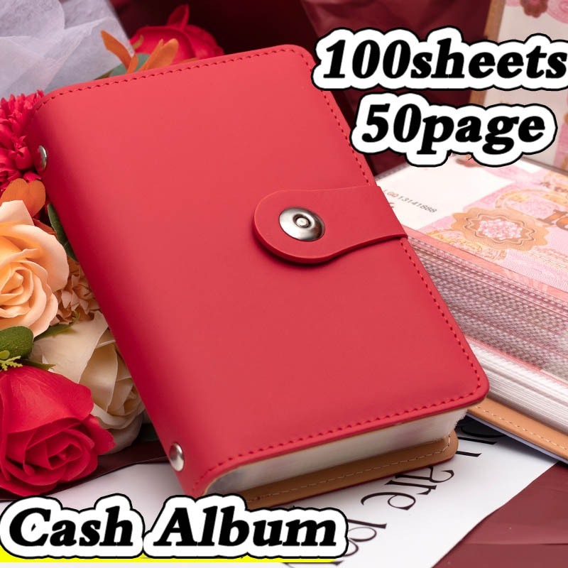 【TOP】Save Money 100 Envelopes Money Saving Challenge Large Capacity A6 PU Album Cash Book Thicker