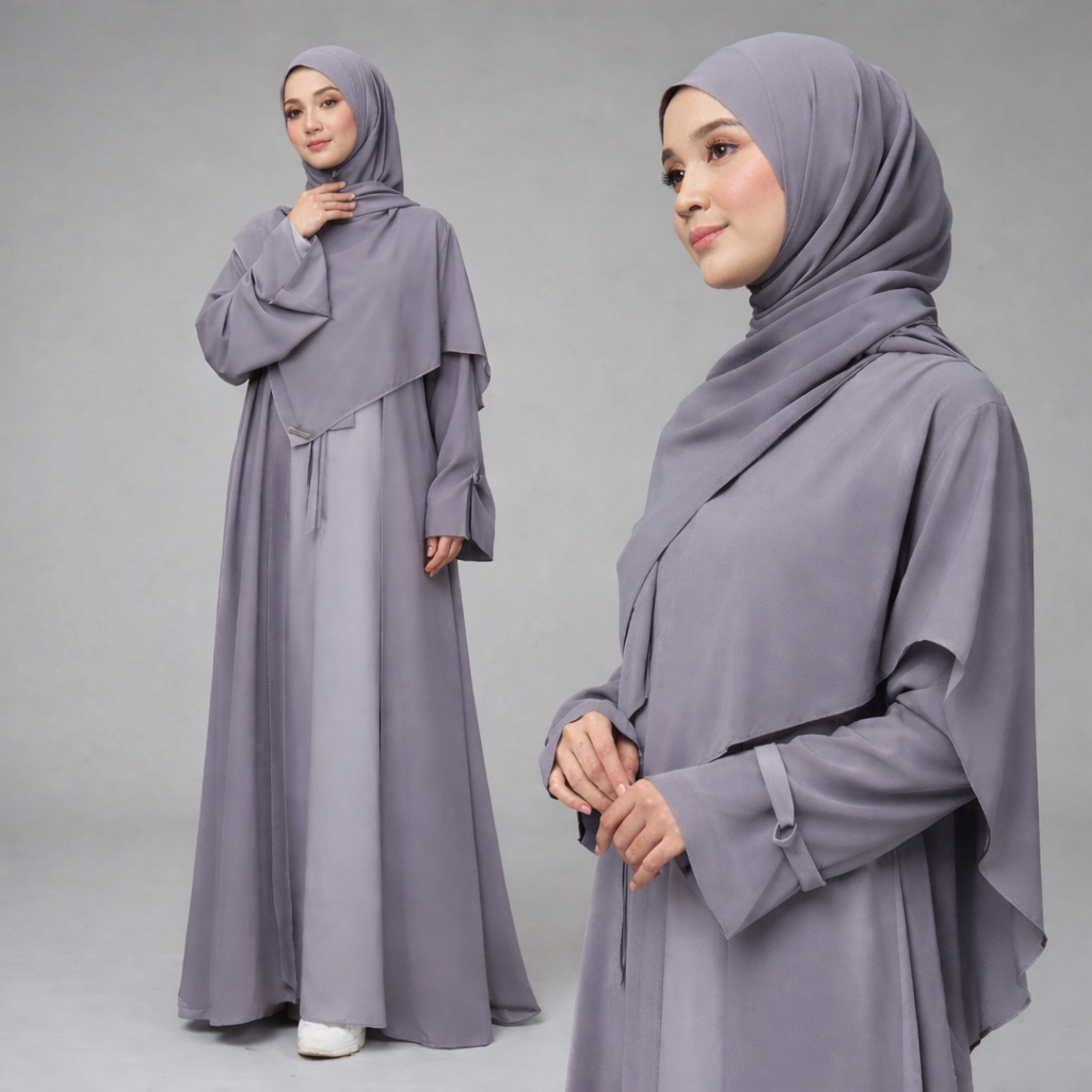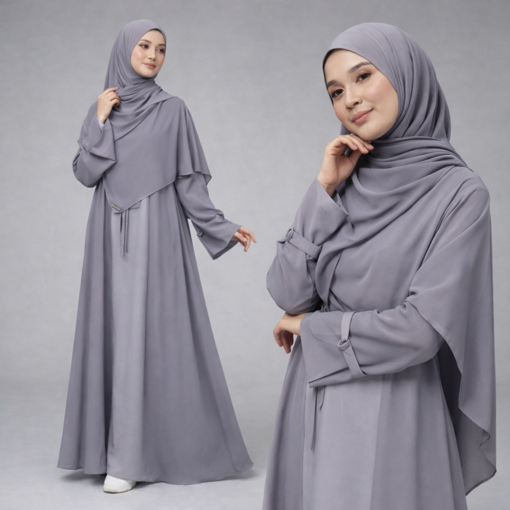 Vallina Outfit - Helwa Abaya Set Pashmina Maxy Dress for Muslim Women, Teenagers, Adults, Premium Eid Gamis M - XL