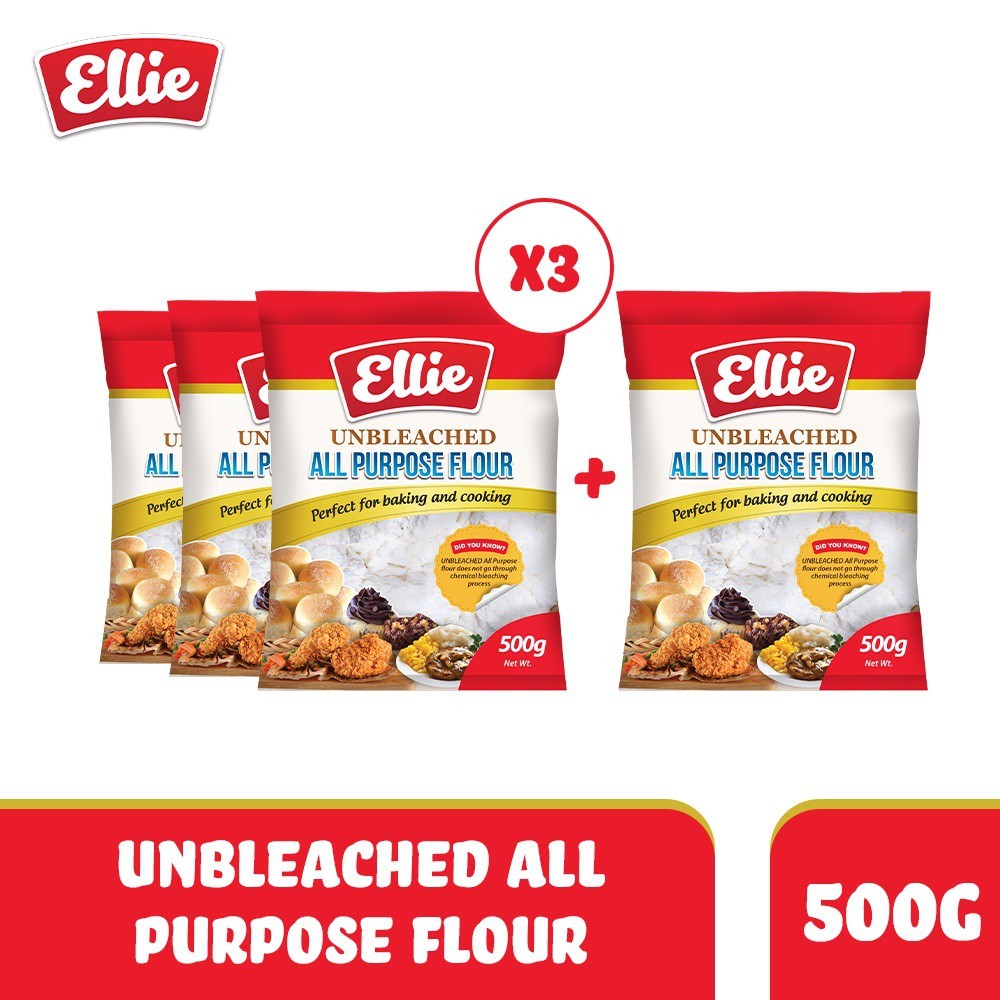 Ellie Unbleached All Purpose Flour Pack of 3 + 1 FREE 500g