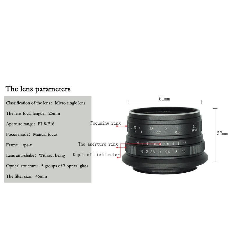 7Artisans 25mm f1.8 Manual Focus APS-C Micro Single Lens Suitable For Sony E/Canon M/Fuji X/M43