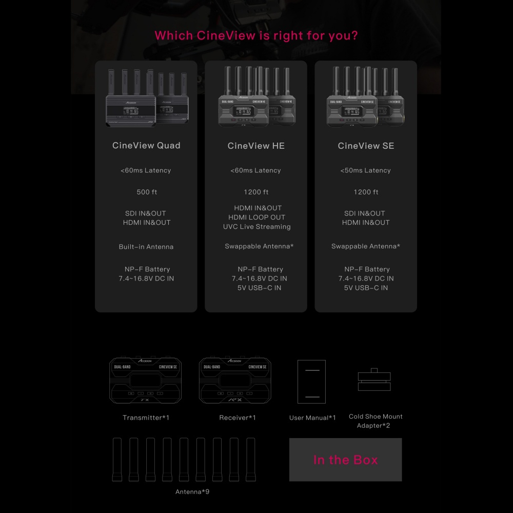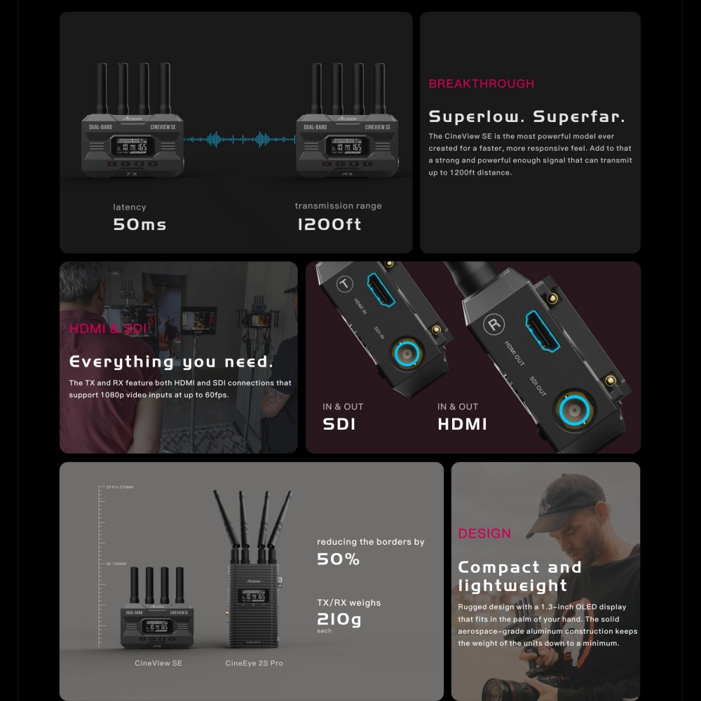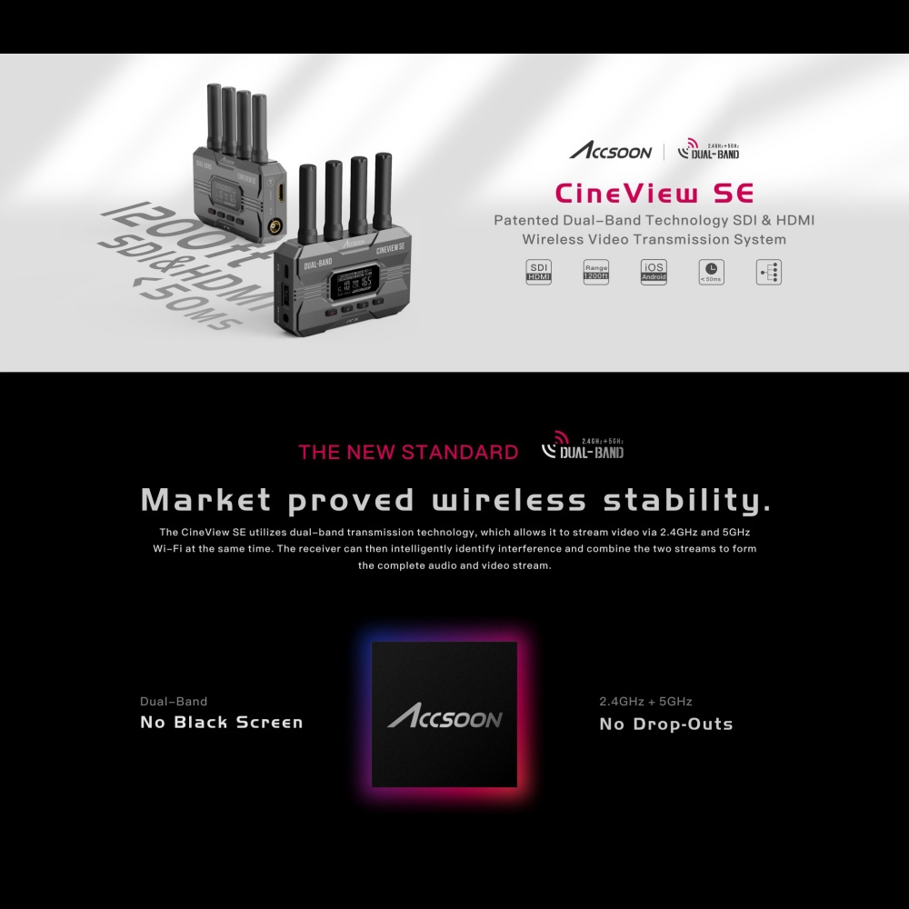 Accsoon Cineview SE Wireless Video Transmission System SDI HDMI Dual Band Transmitter Receiver Kit
