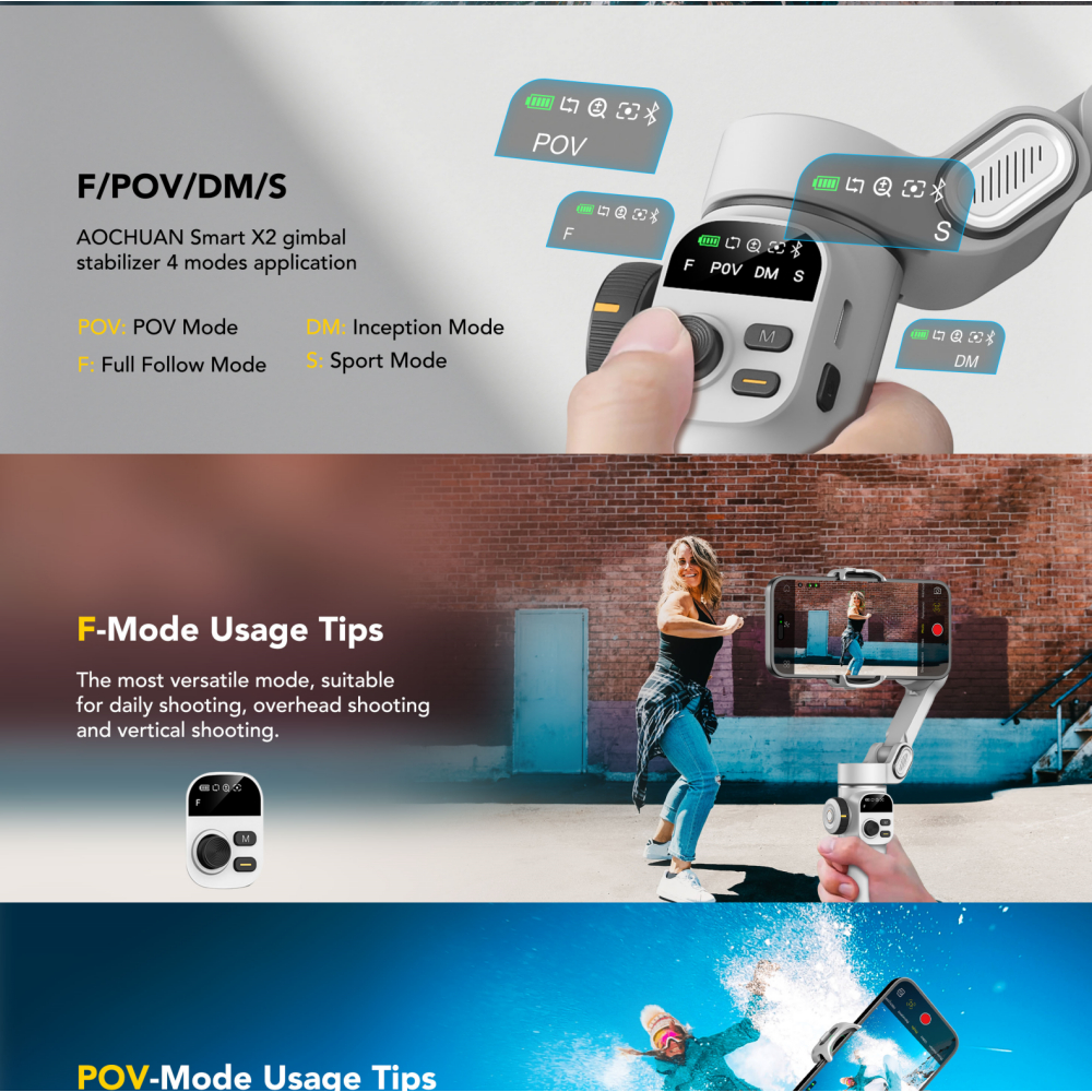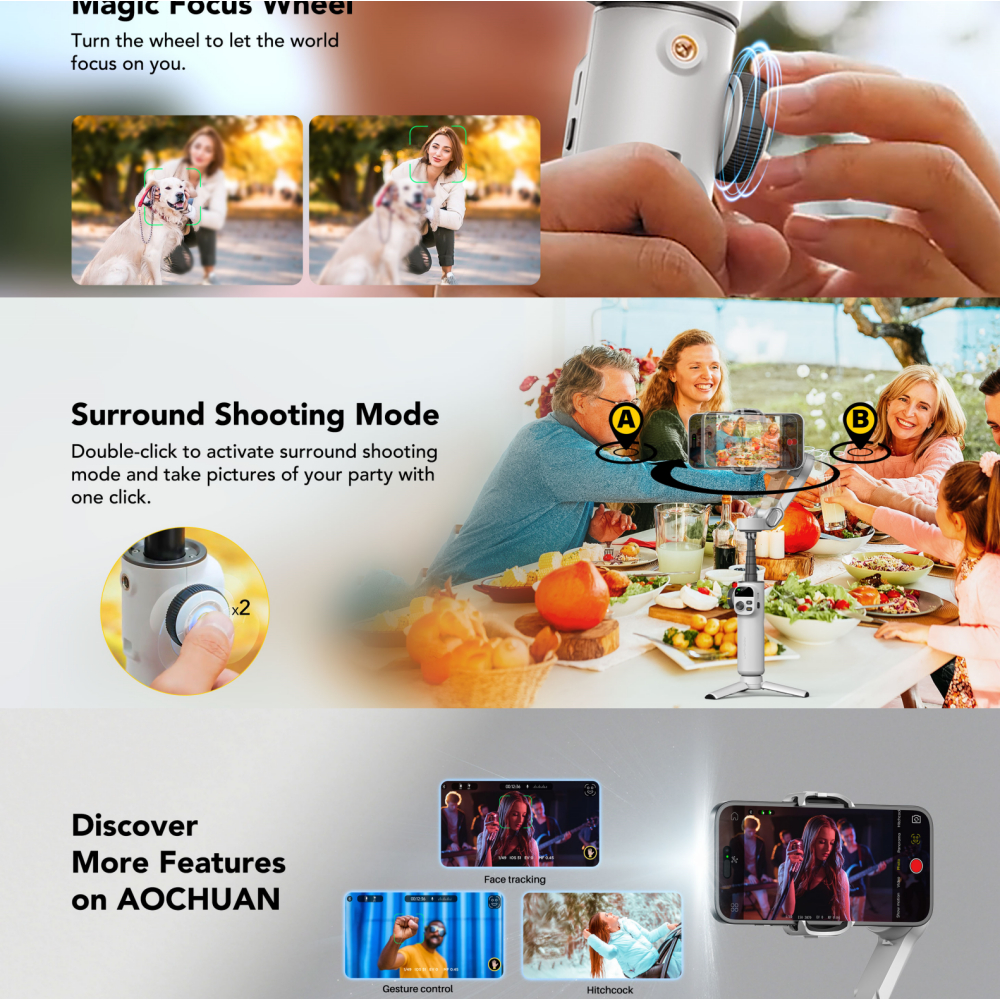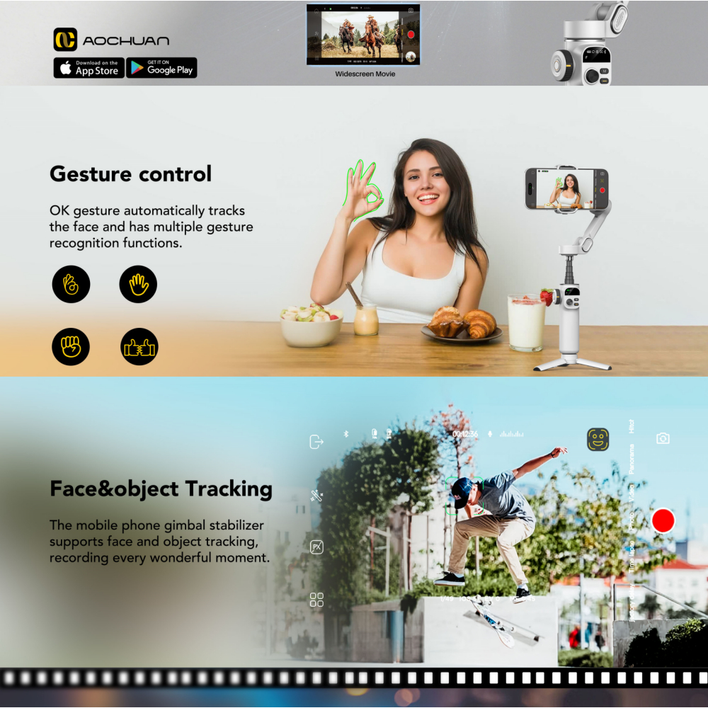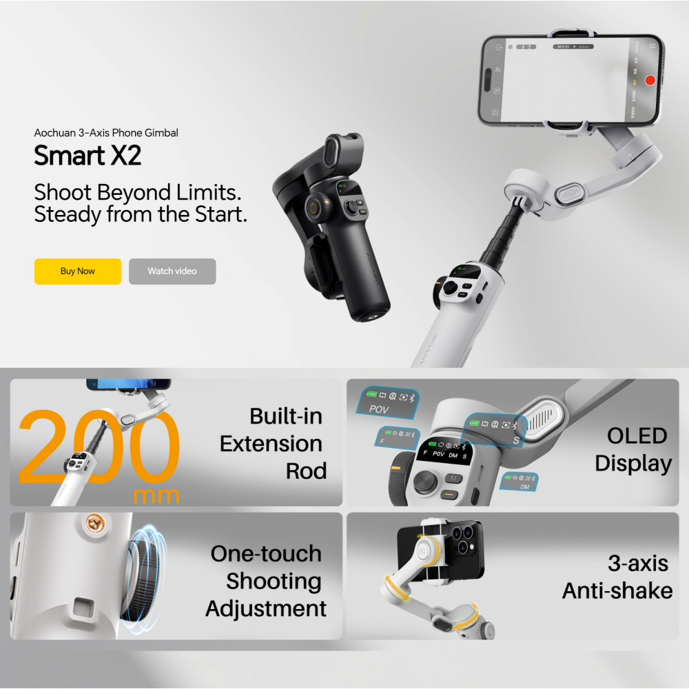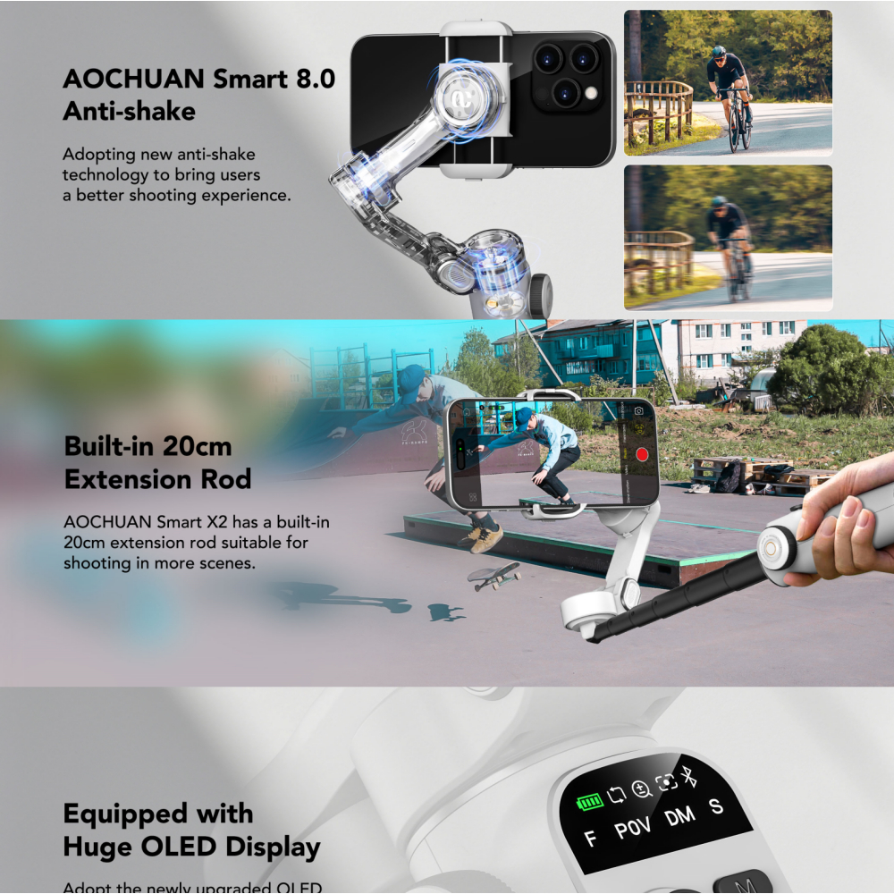 AOCHUAN X2 AI Tracking Smartphone Stabilizer 3-Axis Gimbal Anti-Shake Built-in 20cm Extension Rod Travel Selfie Vlog Smart Follow Automatic Rotating Stand