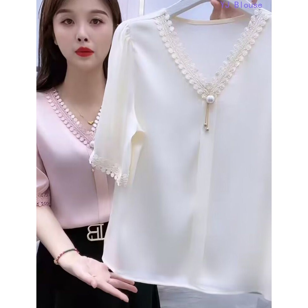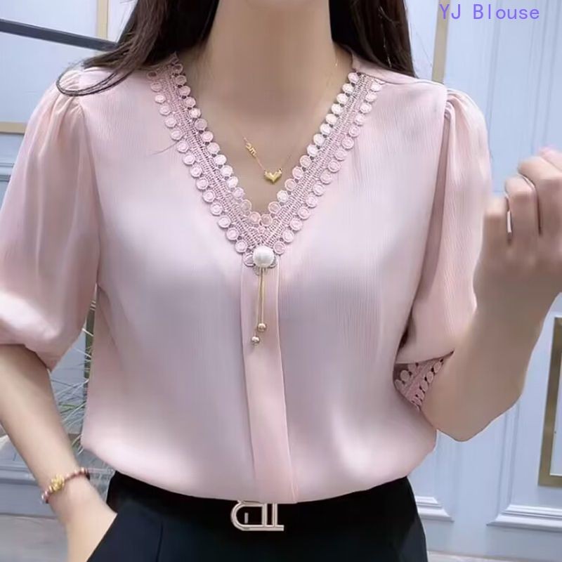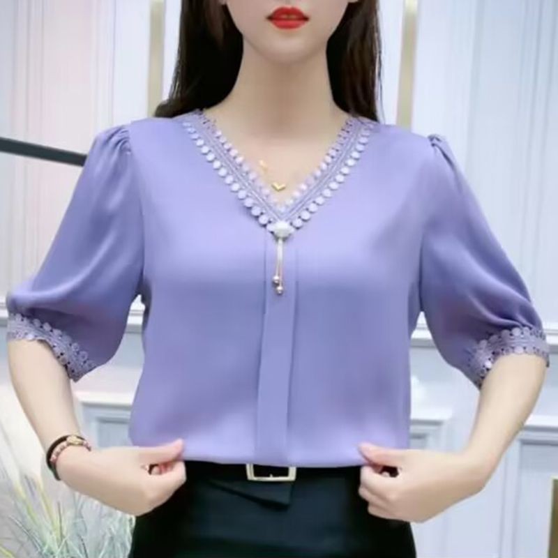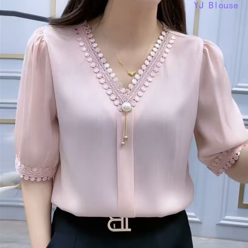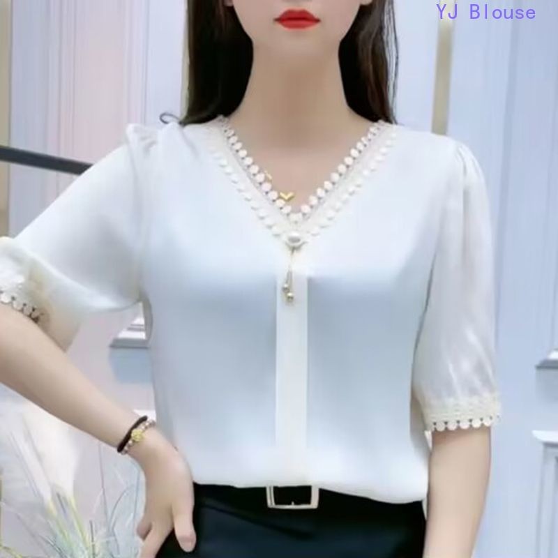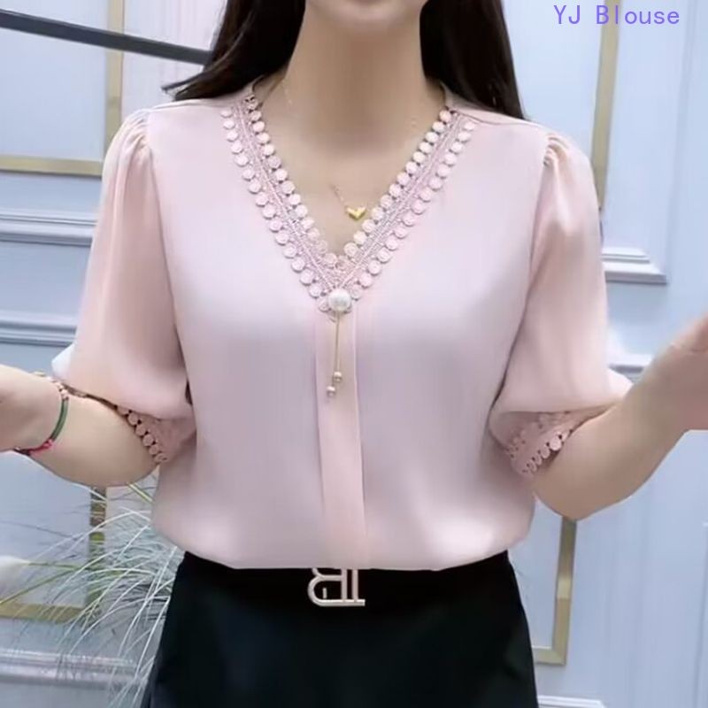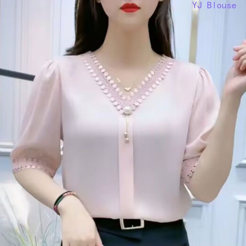 Chiffon Blouse Plus Size Women Korean Style Fashion Casual V-neck Short-sleeve Shirt