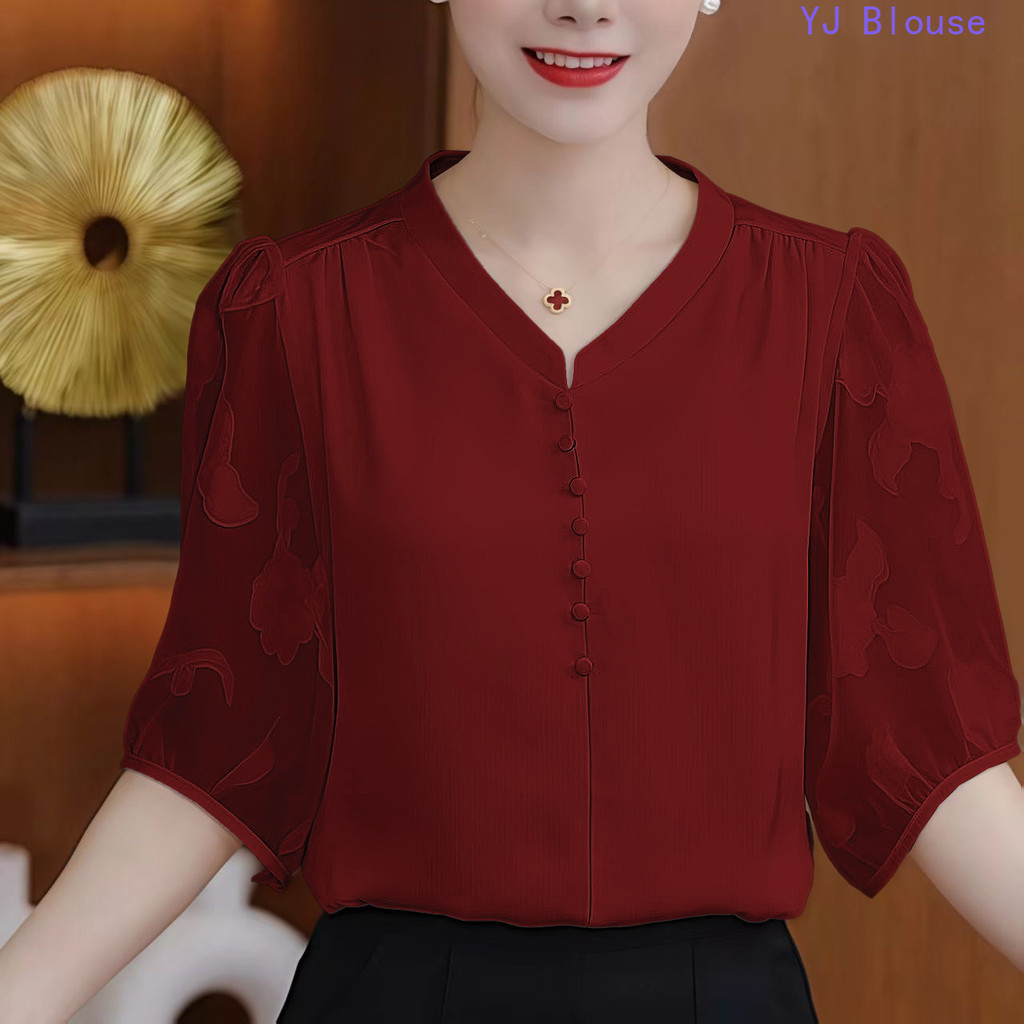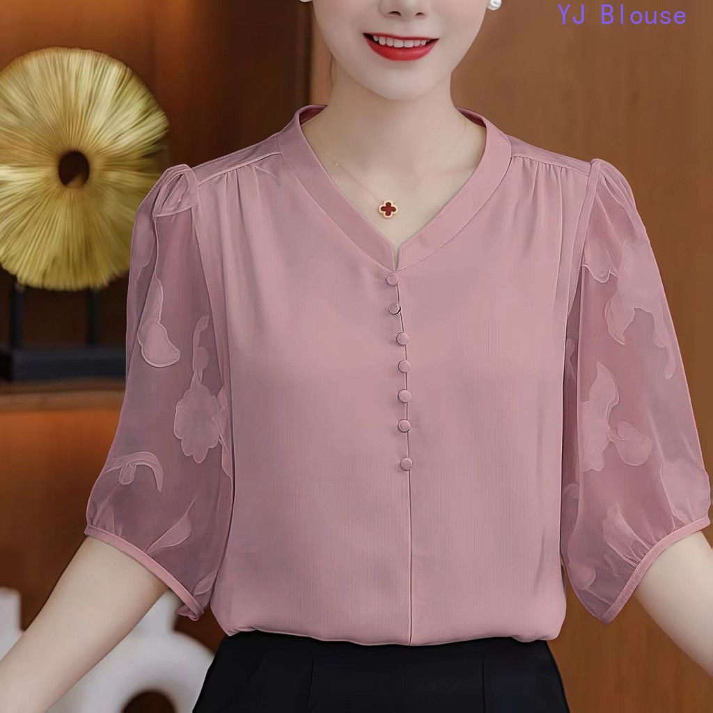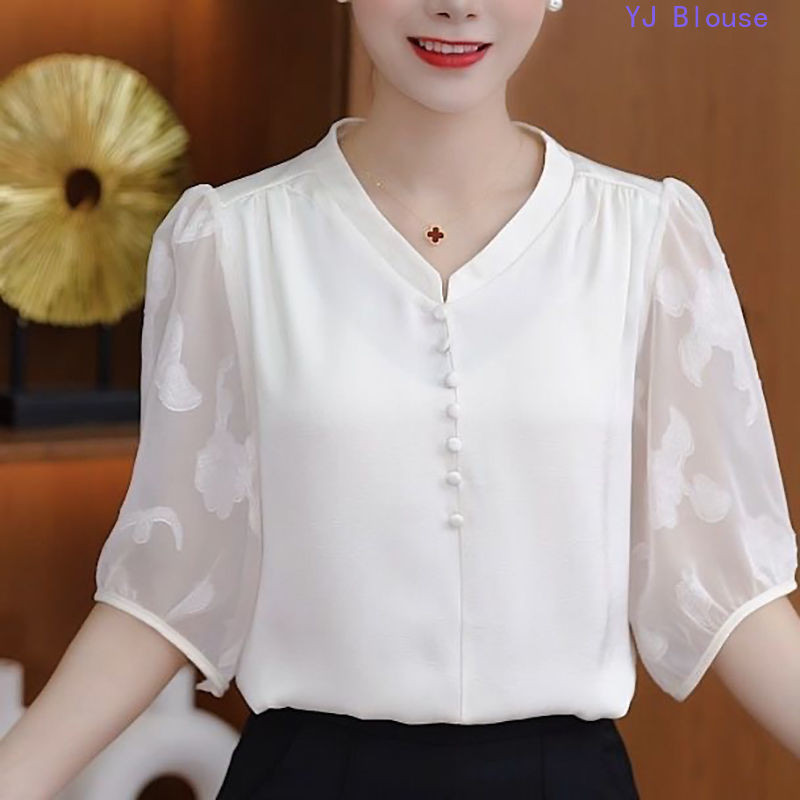 Chiffon Blouse Plus Size Women Korean Style Fashion Causal Half-sleeve Shirt