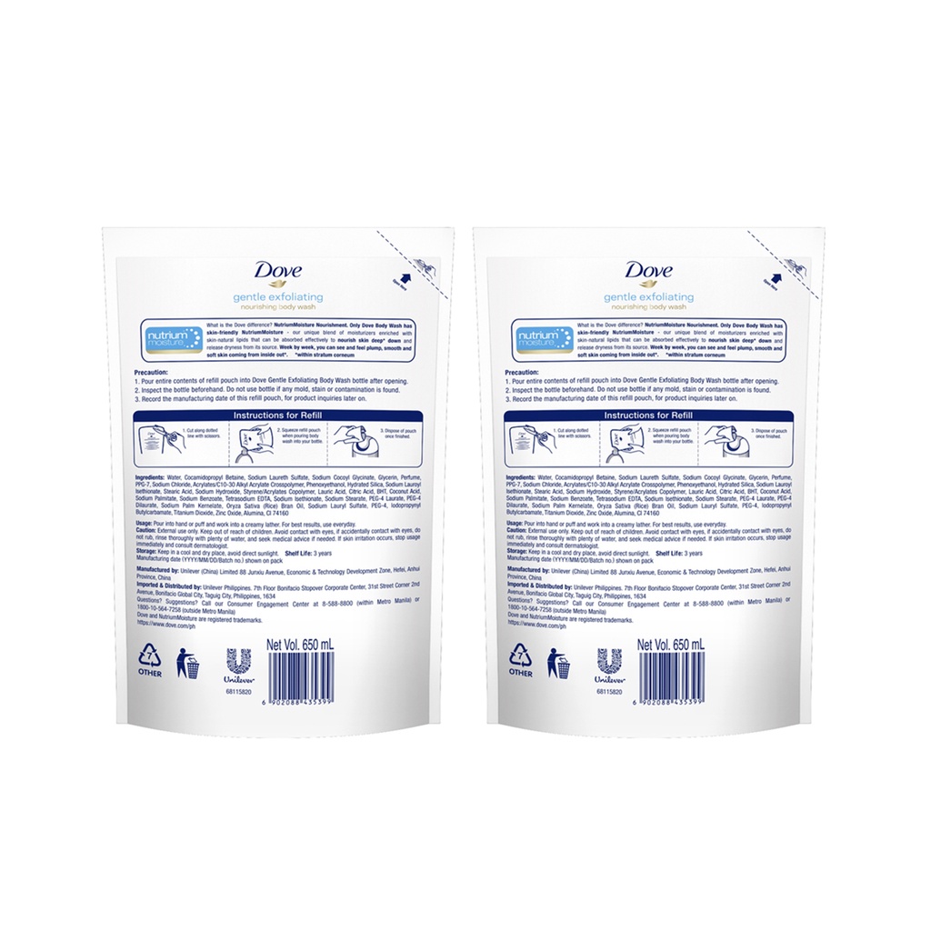 [BUNDLE OF 2] Dove Body Wash Gentle Exfoliating 650ml Refill