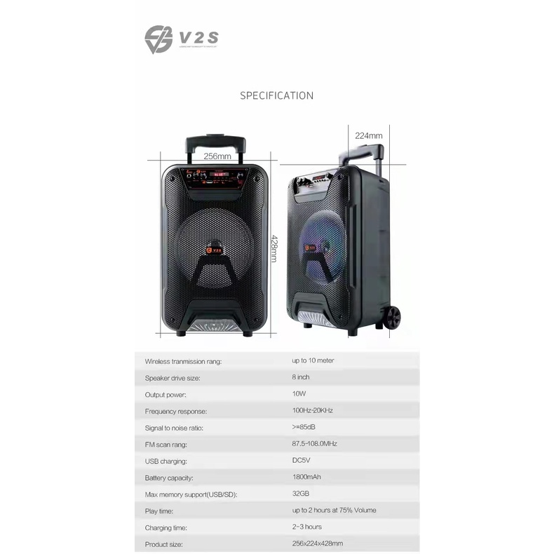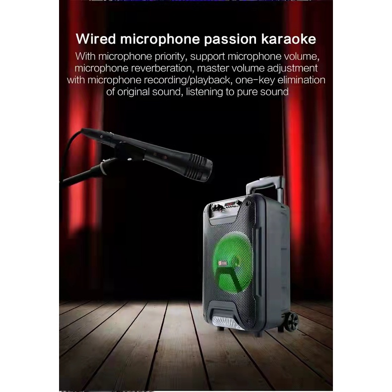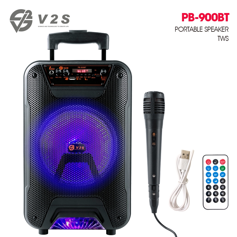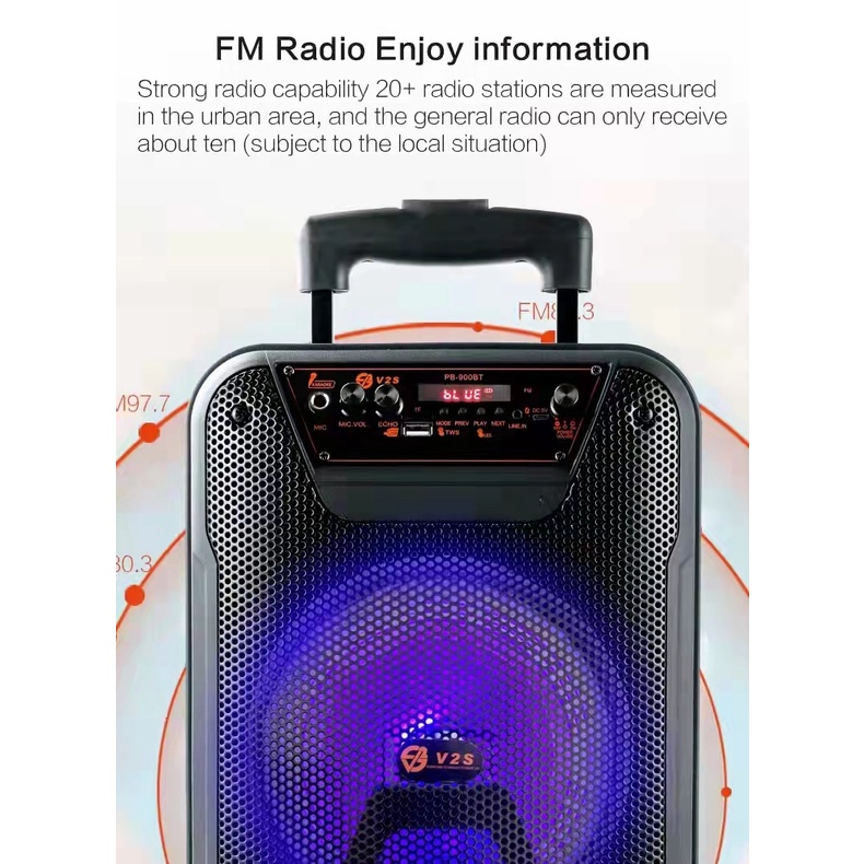 V2S PB900TWS 8.8Inch Rechargeable Bluetooth Wireless Trolley Type Portable Speaker FM AUXSD CARD USB