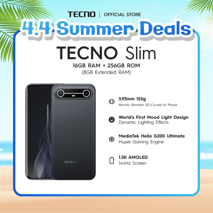 TECNO SPARK SLIM 16GB (8+8) + 256 | 5.93mm Slimmest 3D-Curved | 144Hz 1.5K AMOLED | 5160mAh 45W