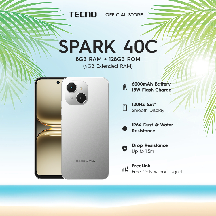 TECNO Spark 40c 8GB (4+4)+128GB | 6000mAh 18W BIG Battery | 120Hz, 6.67'' Smooth Display|IP64