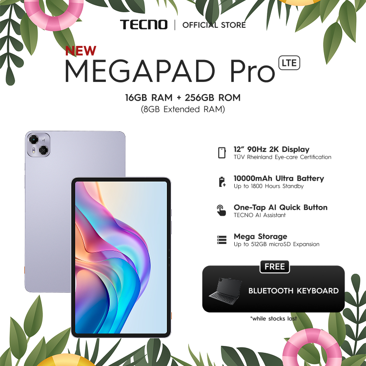[NEW] TECNO MEGAPAD Pro 16GB (8+8) + 256 | 2K 12” Mega Display | 6.9mm metal finish | 10000mAh |