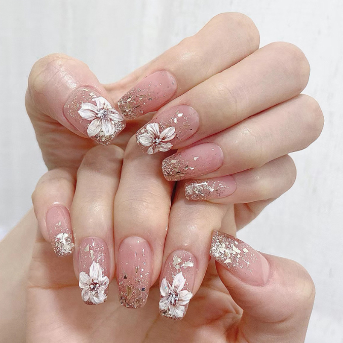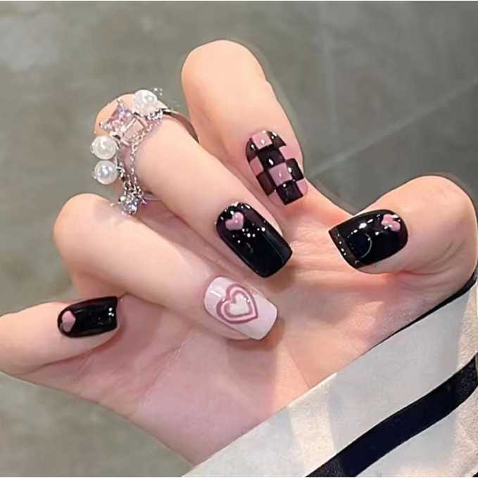 (With glue) Hyuna Style Marble White Flame Stripe Check Pattern Acrylic Fake Nails With Glue COD