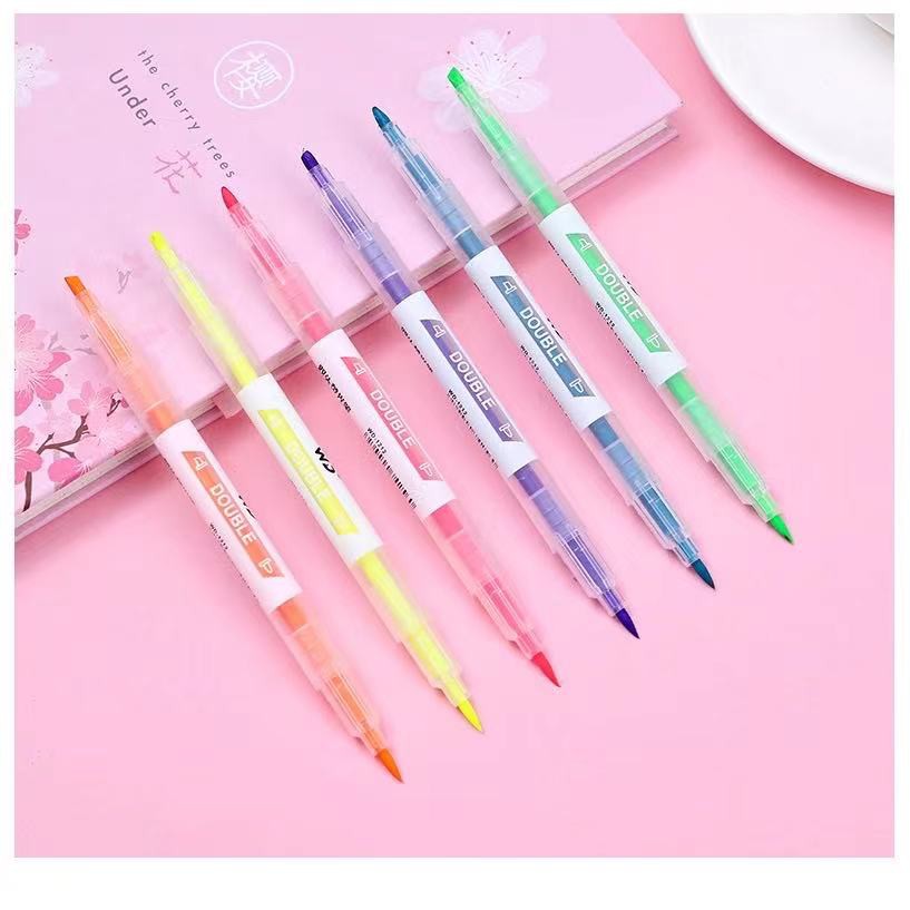 Two - headed and two -Tip Highlighters Colored Slant Marker, Drawing pens, and Watercolor Pens