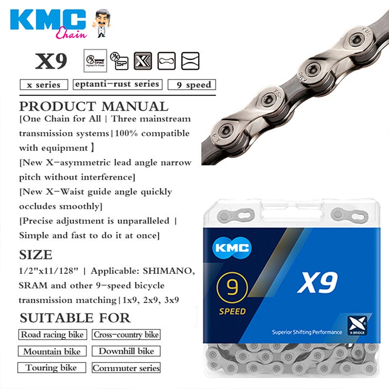 KMC Chain X8 X9 Road Mountain Bikes Chain 8S 9 Speed MTB Bicycle Chain with Links Lock Compatible Shimano SRAM Cycling Parts