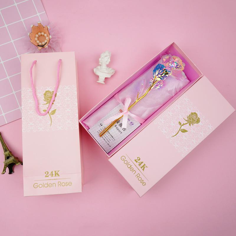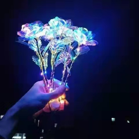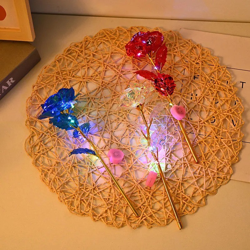 【Glowing Rose】Artificial flower Flash 24K Rose Gold foil flowers colorful light Valentine's Day Birthday Gift Creative Gift Home House Decor