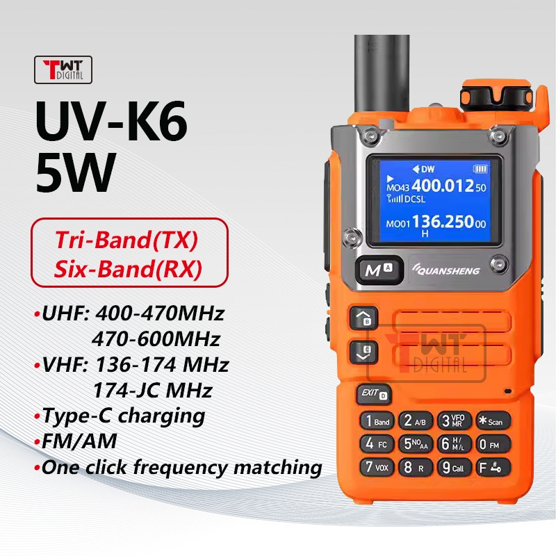 Quansheng UV-K6 Walkie Talkie Portable Two Way Radio Multi-Band 10km Long Range AM Band TypeC Charge