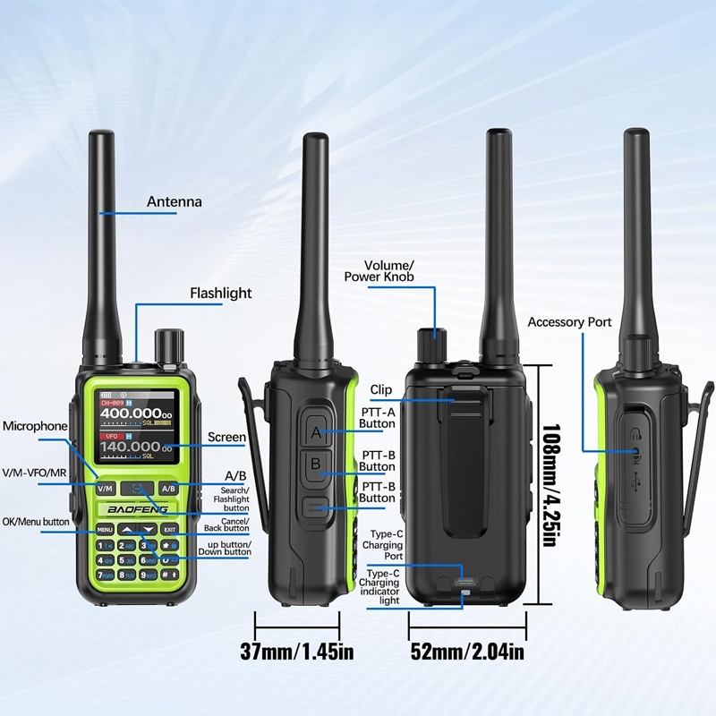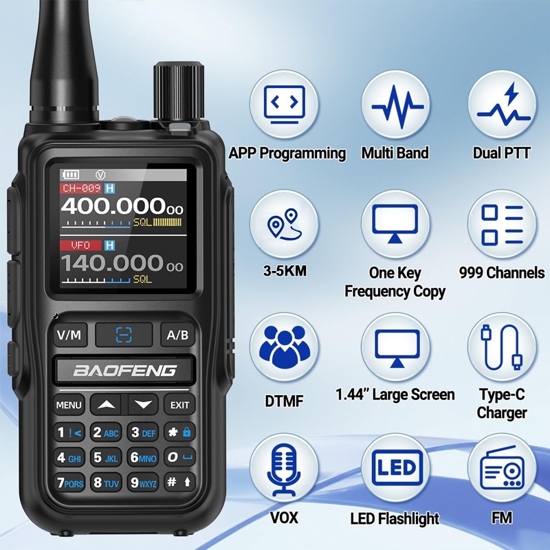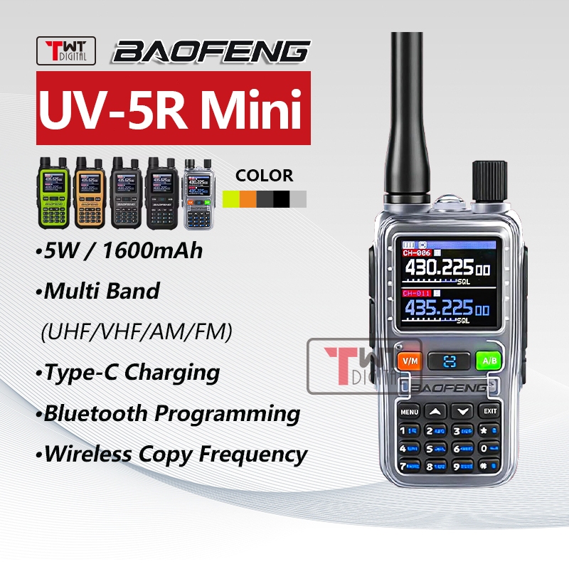 Baofeng UV-5R Mini Walkie Talkie UHF VHF Portable Bluetooth TypeC Two Way Radio Transceiver FM Radio