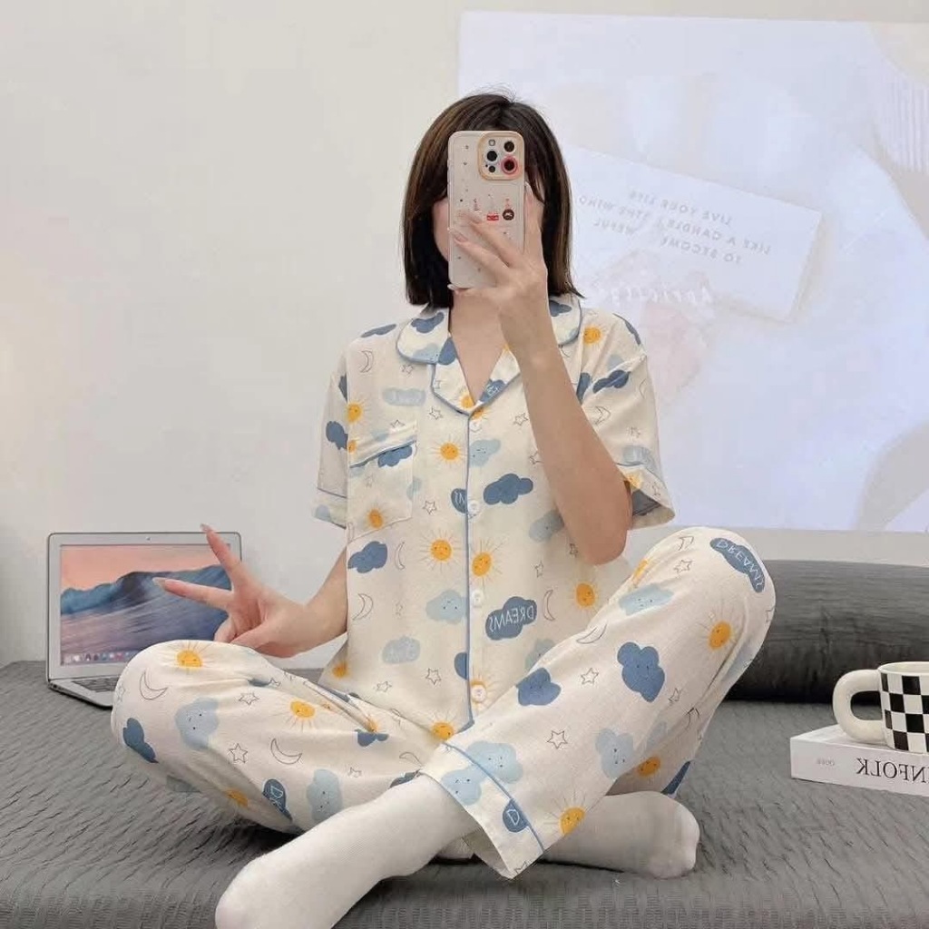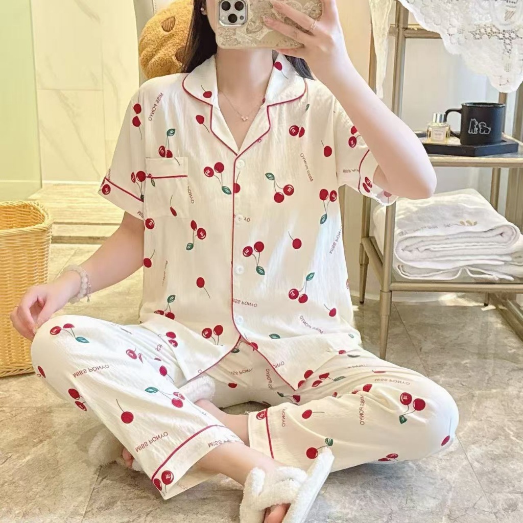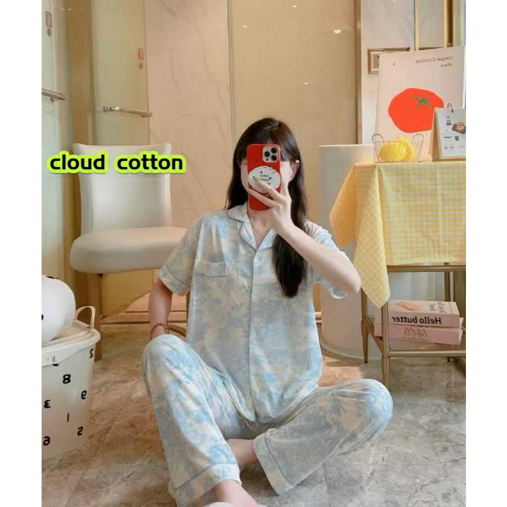 #CAND Women Cloud Cotton Cute Printed Sleepwear Terno Pajama Set