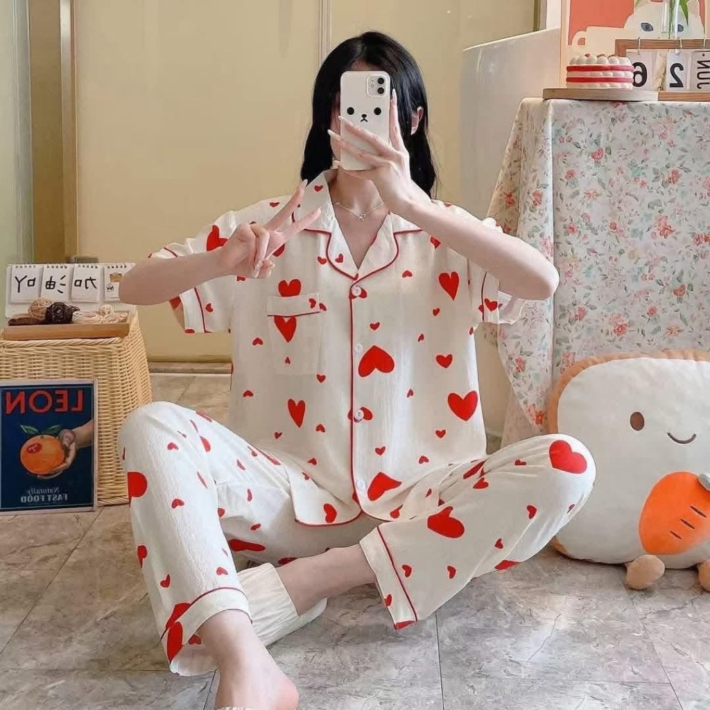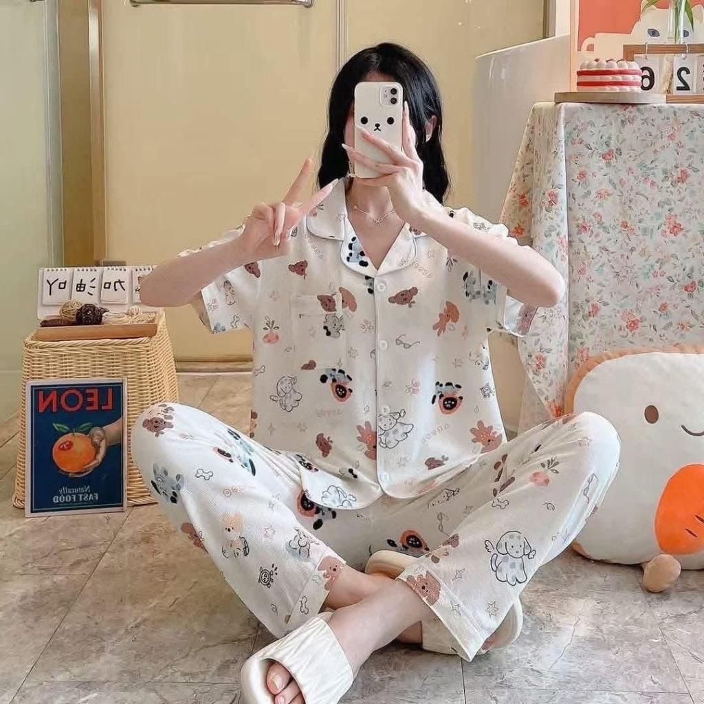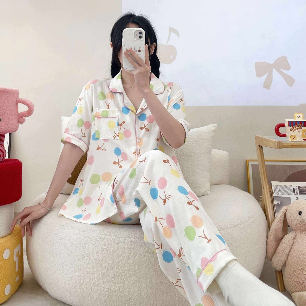 #CAND Women Cloud Cotton Cute Printed Sleepwear Terno Pajama Set