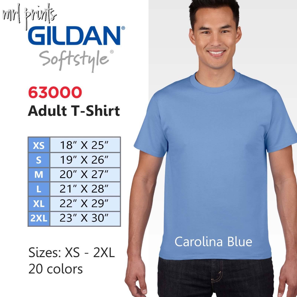 Gildan Softstyle Carolina Blue Light 63000 100% Cotton Plain Tshirt Unisex Shirt Organic MRL Prints