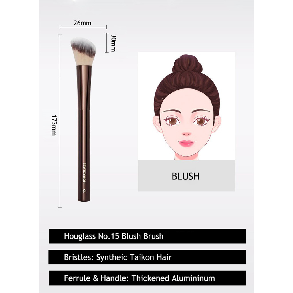 Hourglass Blush Brush No 15 Angled Stippling Contour Makeup Brush with Soft synthetic hair Alumininum Handle