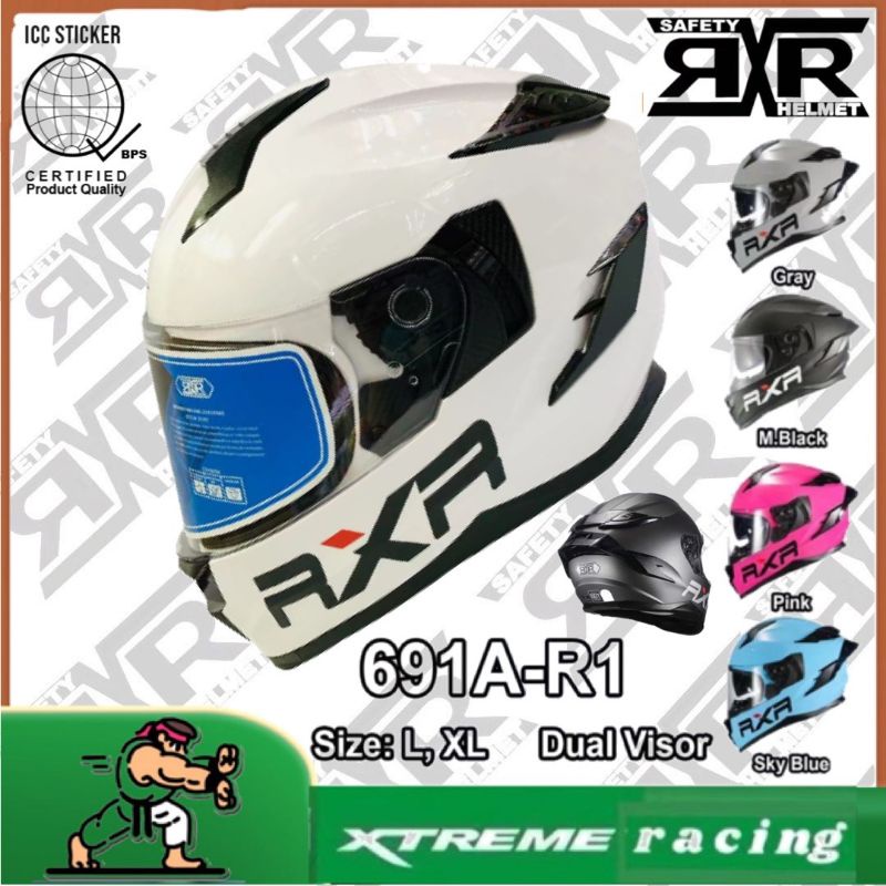 RXR 691A-R1 DUAL VISOR FULL FACE HELMET WITH ICC (BPS) SIZE 59-60CM 62-64CM LARGE & XL