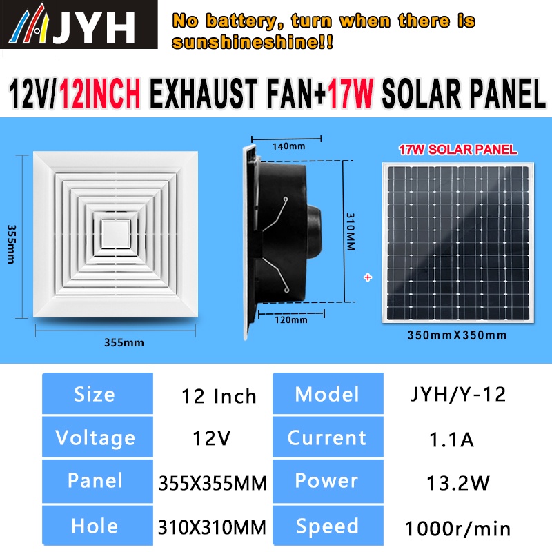 Solar DC 12V Ceiling Direct Exhaust Fan 8 inches 12 inches Decoration Gypsum Ceiling Kitchen Bathroom Roof Strong Silent Ventilation Fan