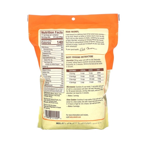 Bob's Red Mill Creamy Wheat Hot Cereal also Known as Farina 24 oz (680 g)
