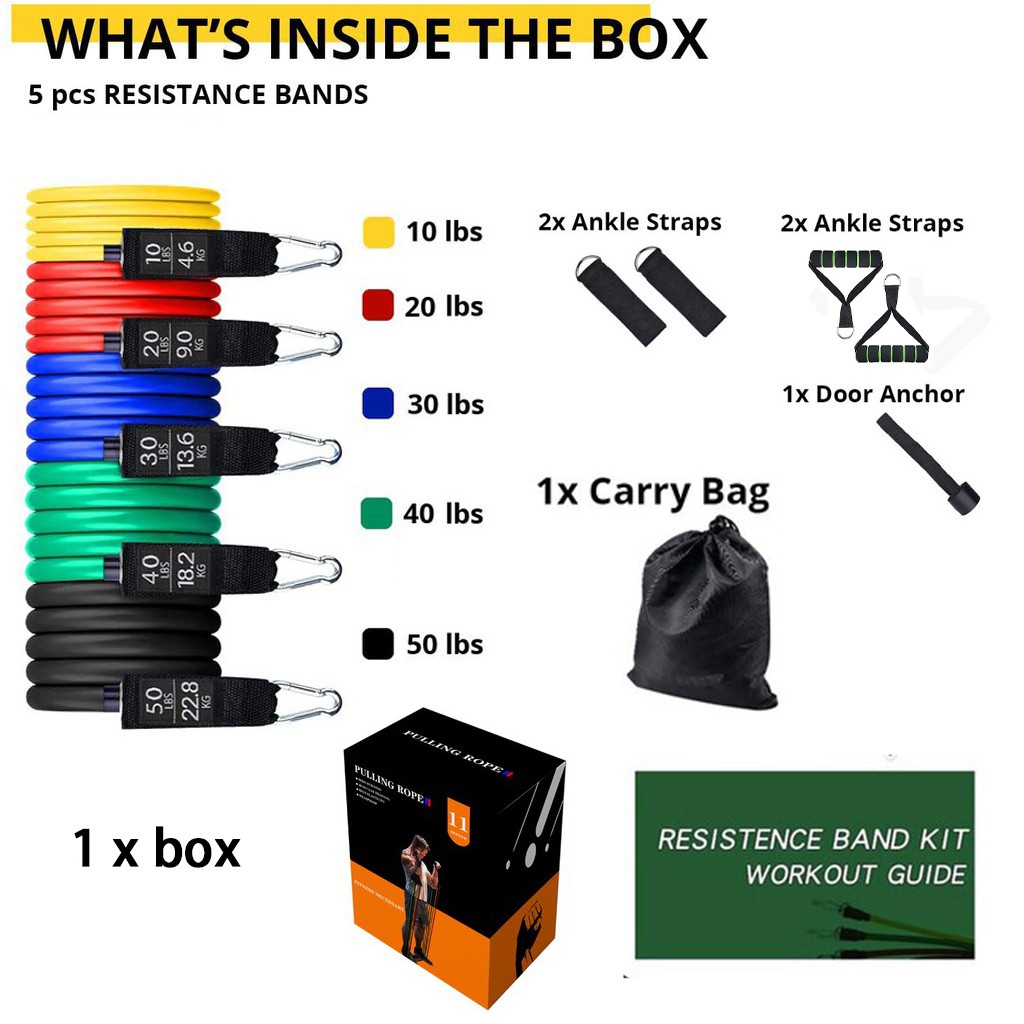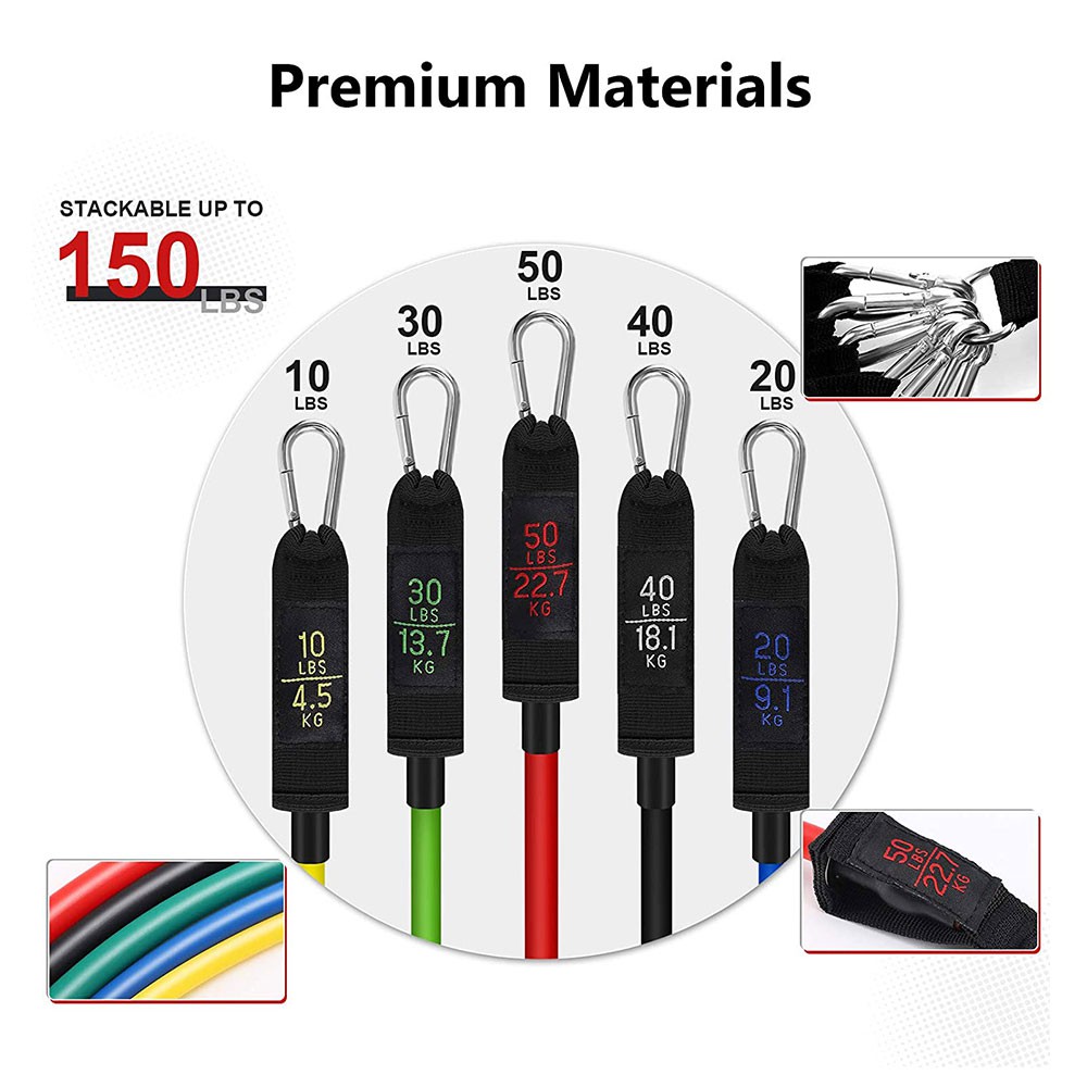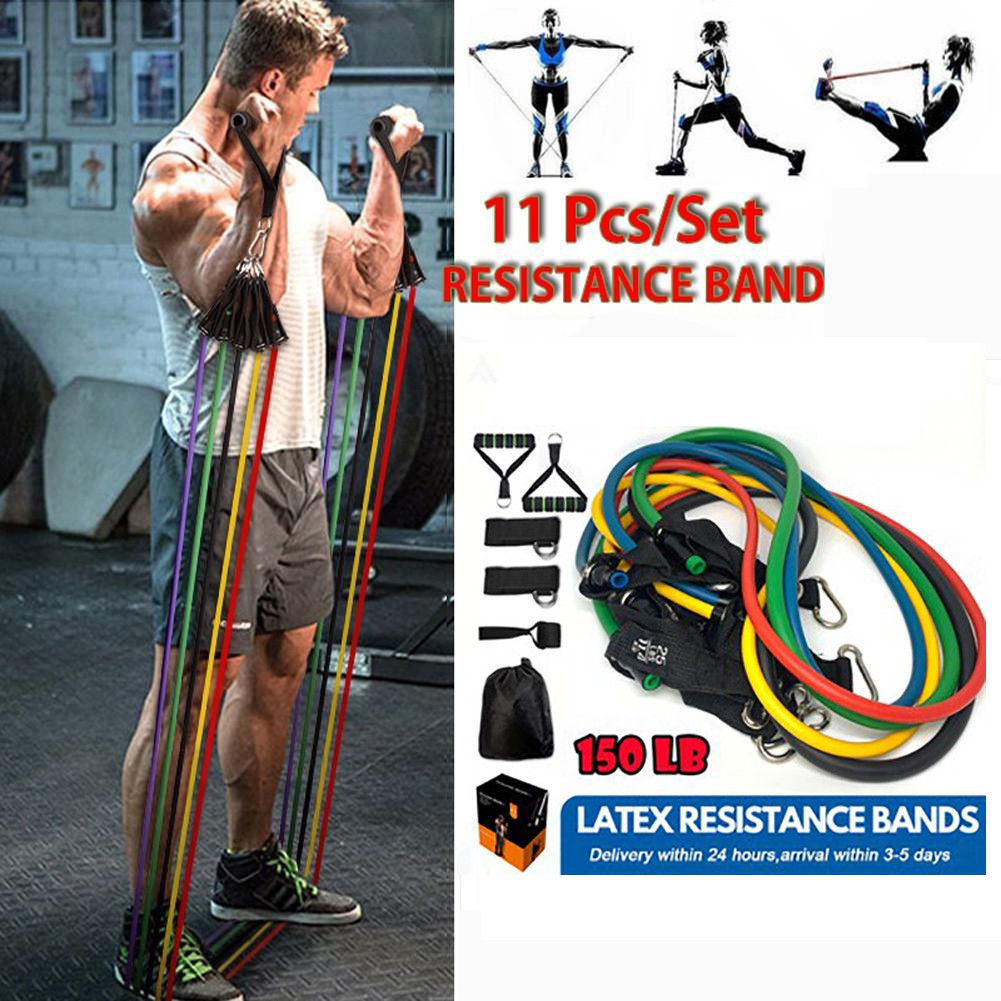 【150 LBS】11Pcs Resistance Bands Set Expander Pilates Yoga Exercise Fitness Rubber