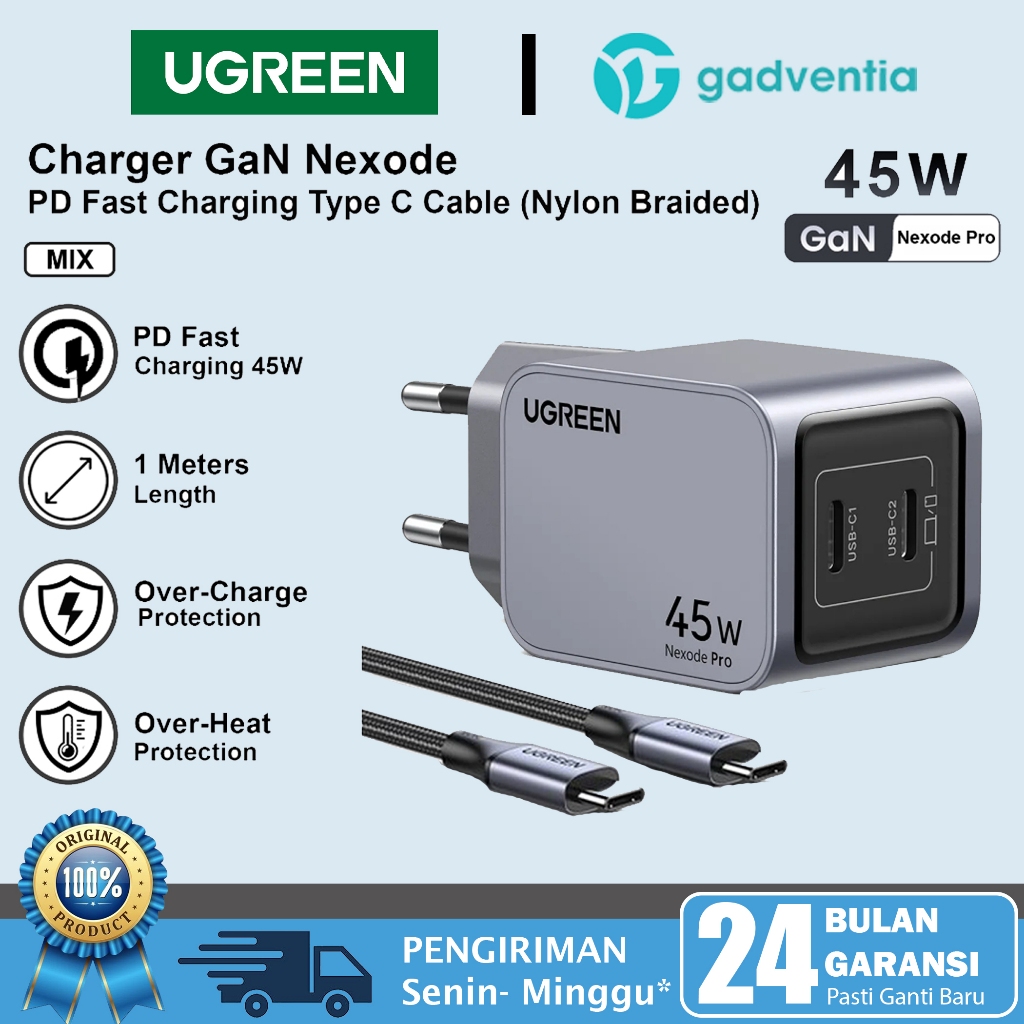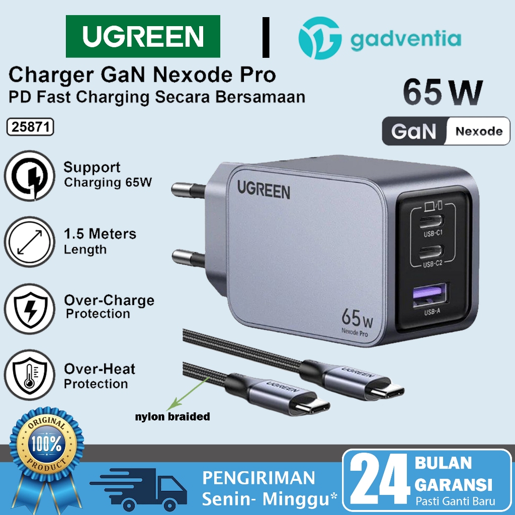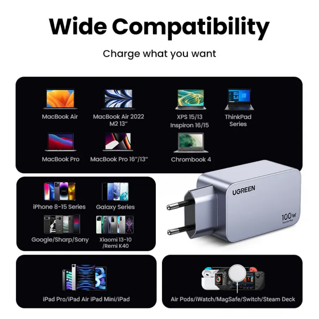 Wall Charger UGREEN Nexode GaN Pro Fast Charging Adaptor 45w 65w 100w 160w Adapter + USB Type C to C Cable For Vivo Flash Charging Laptop MacBook Air M2 M3 iPad Air Pro iphone 11-15 Pro Max