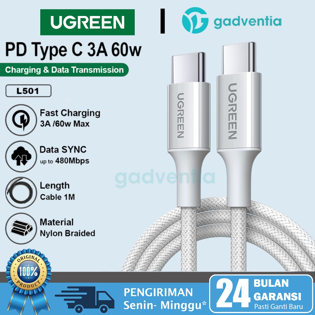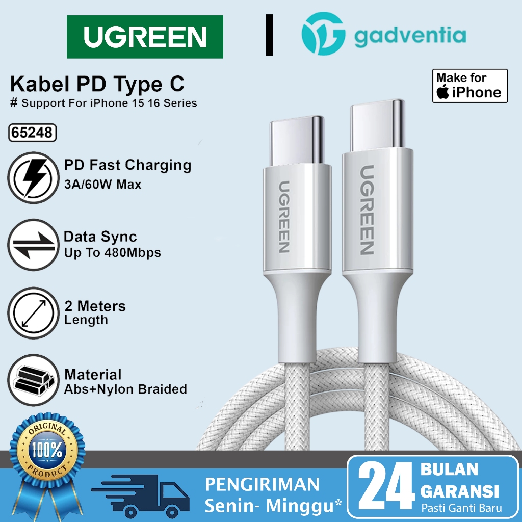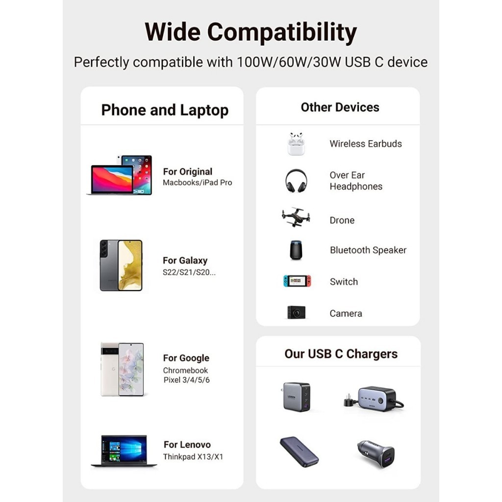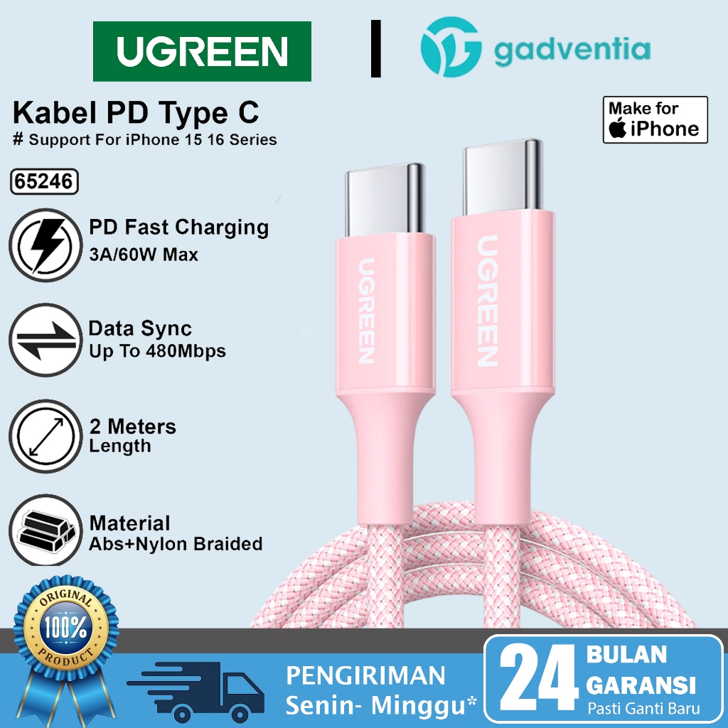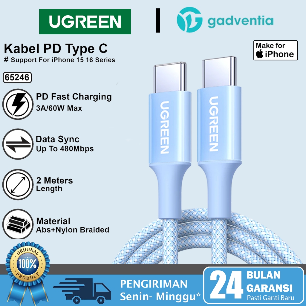 UGREEN Type C to Type C PD Fast Charging Charger Cable Max 60w 100w For iphone 15 16 Pro Samsung S24