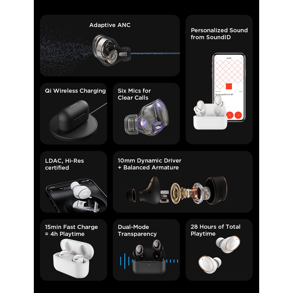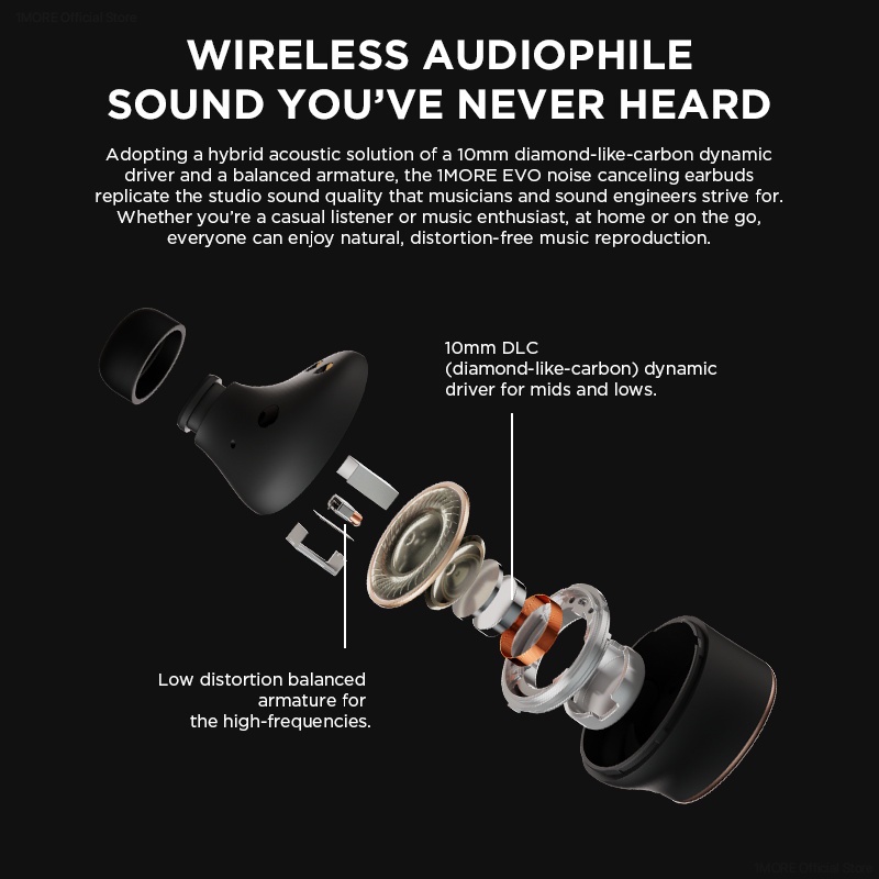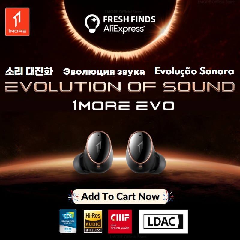 1MORE EVO Evolution of Sound Flagship Hi-Res Wireless Earbuds LDAC Bluetooth 5.2 Sports Headphones 2022 New Gaming Headset
