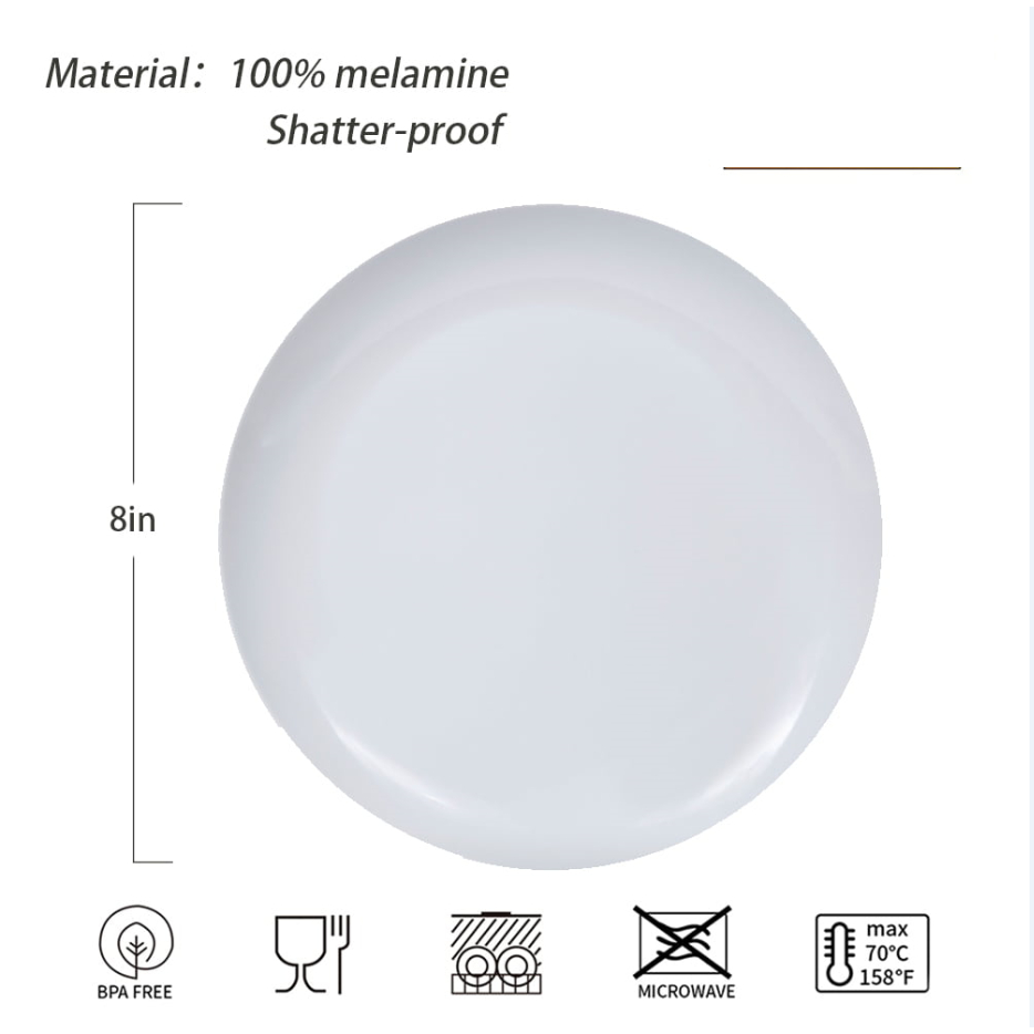 8/9/10 inches Round Melamine Plate Plain Neat Looking Daily Home Plate Durable Child Friendly Round