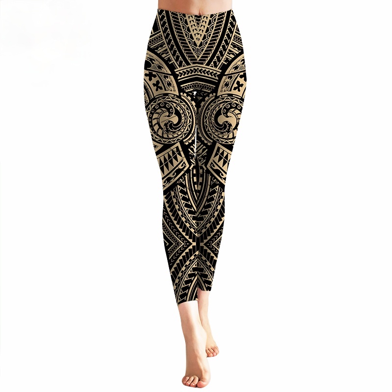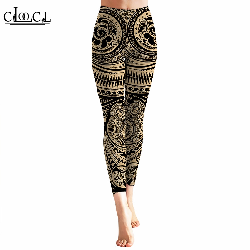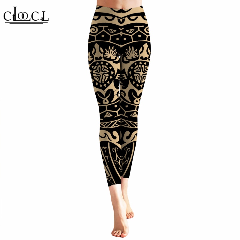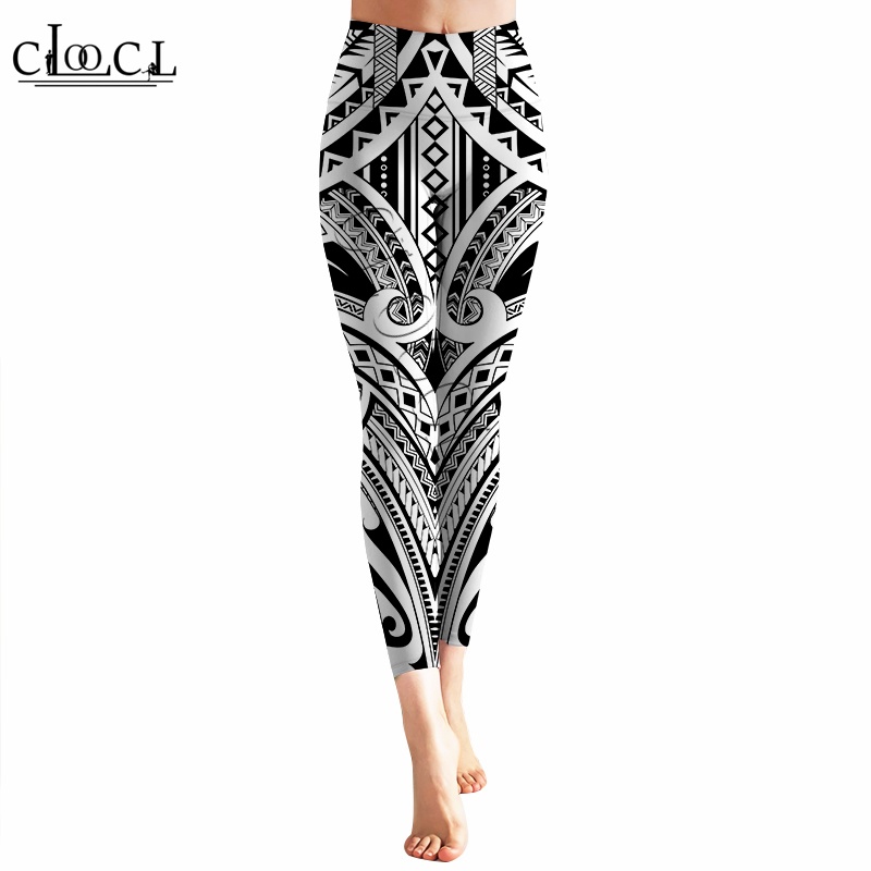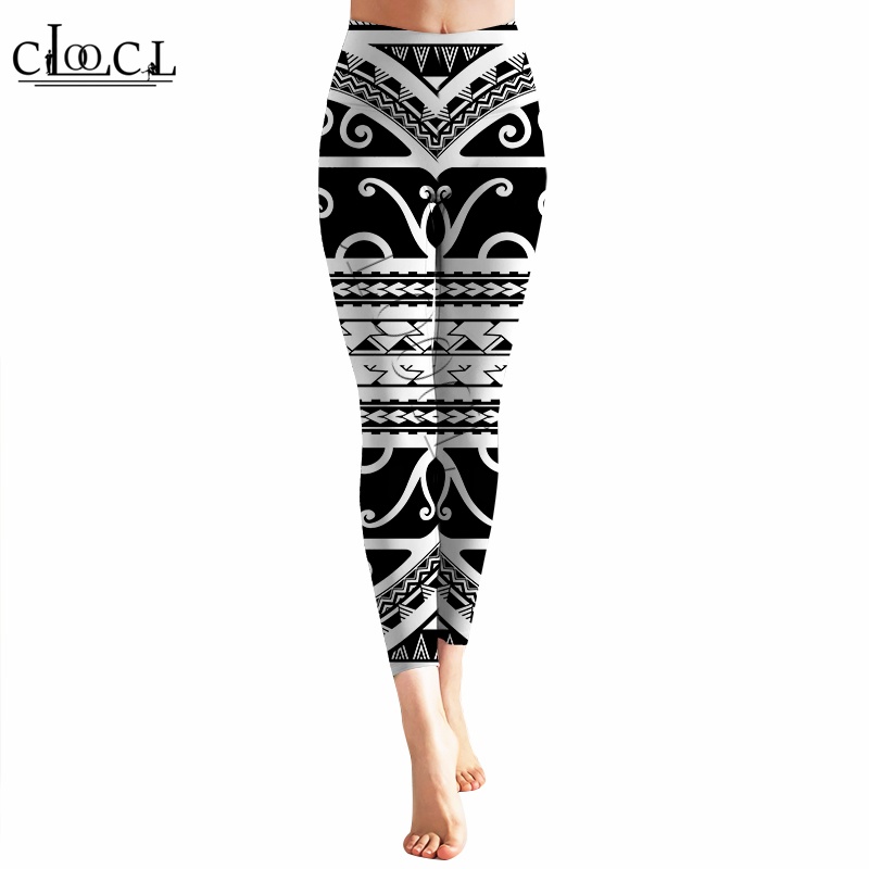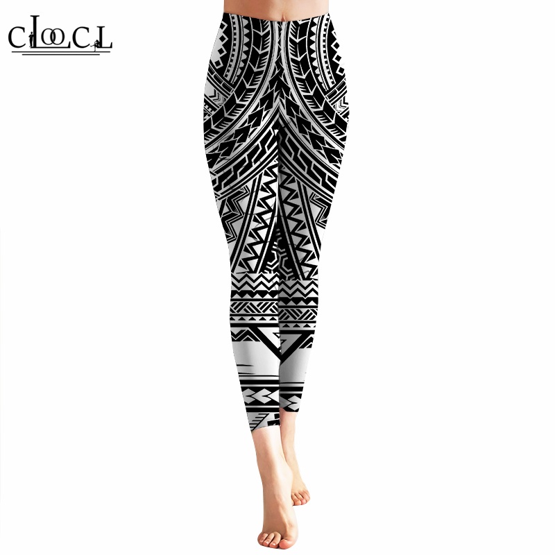 CLOOCL Viking Polynesian Tattoo Print Leggings High Waist Stretch Casual Women's Fitness Track Pants