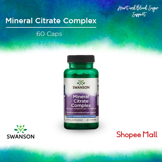 Swanson Mineral Citrate Complex (Calcium-Magnesium-Zinc-Potassium) 60 Caps Heart & Blood Sugar