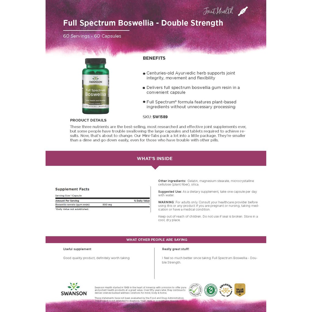 Swanson Full Spectrum Boswellia 800 MG 60 Caps Joint Support