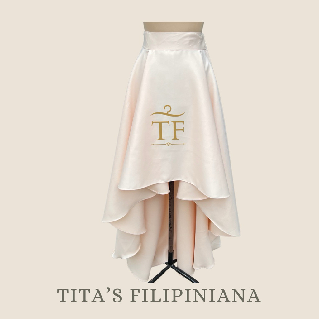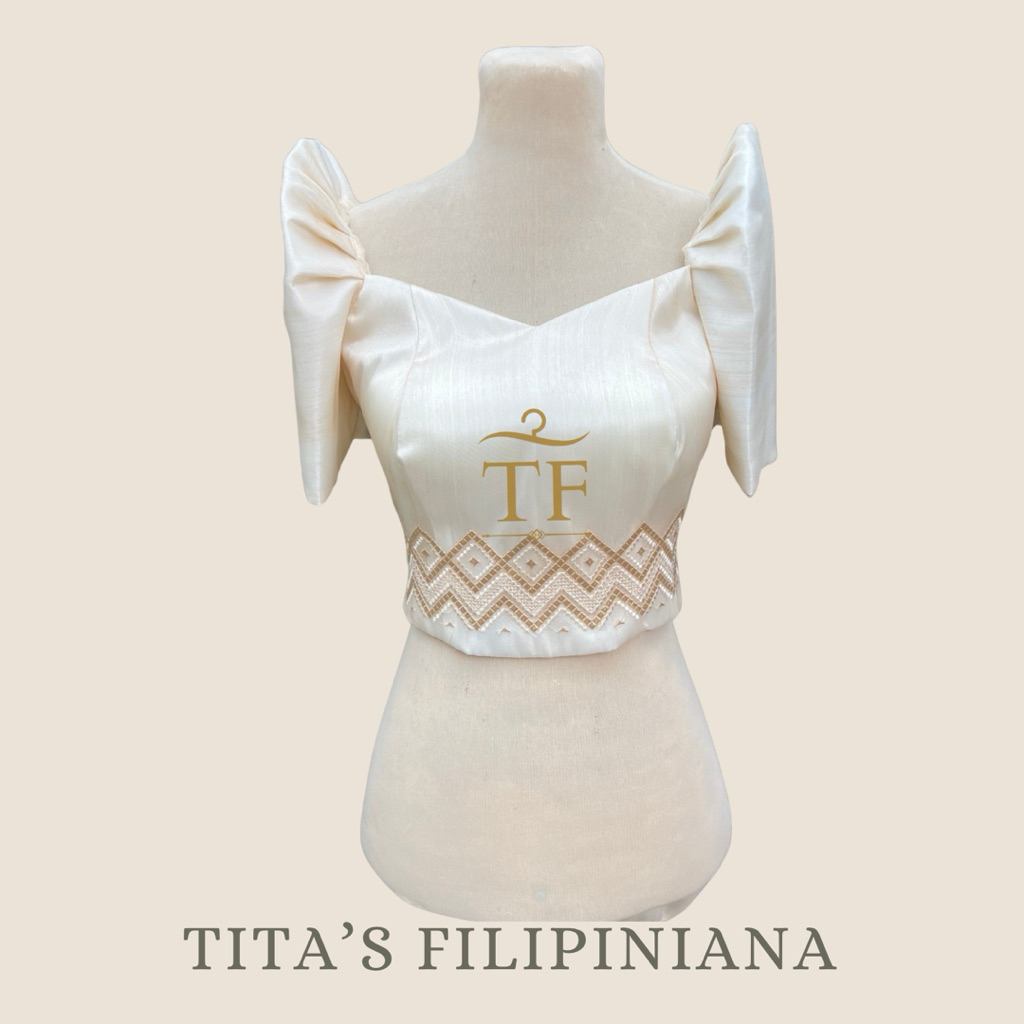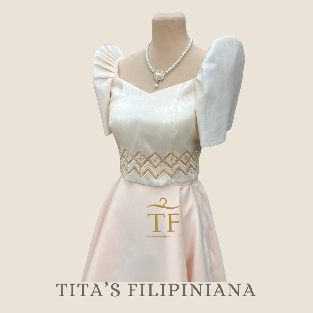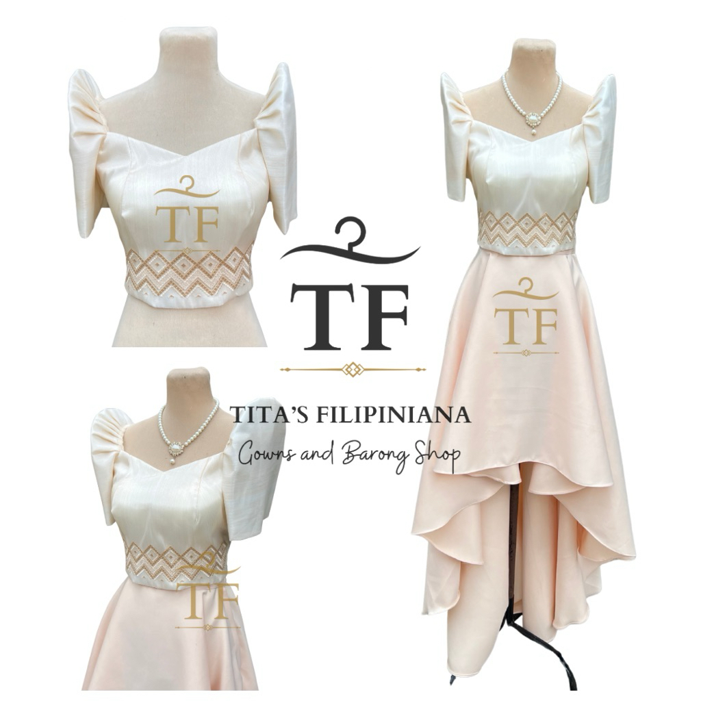 Modern Filipiniana Malou Top and Long back Skirt Beige
