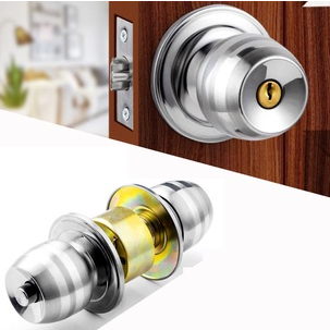 Door Knobs Handle Passage Entrance Lock Stainless Steel Door Knob Lock Entry with 3 Keys Round Ball