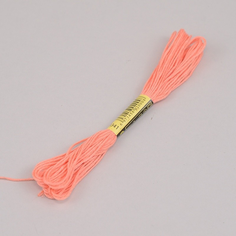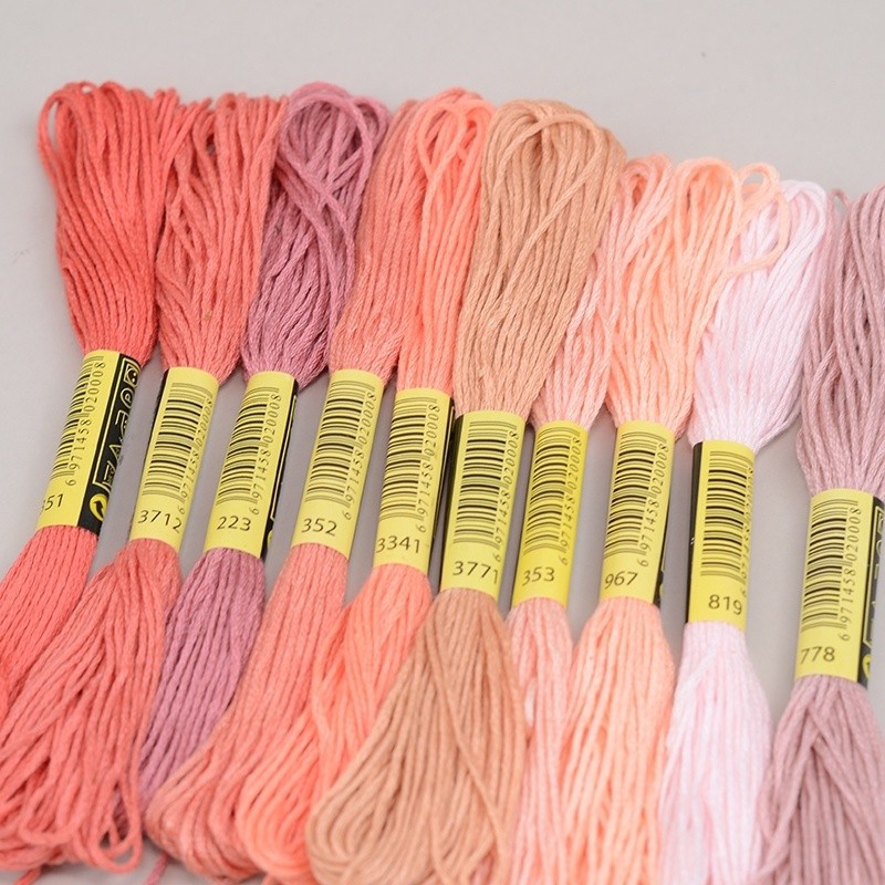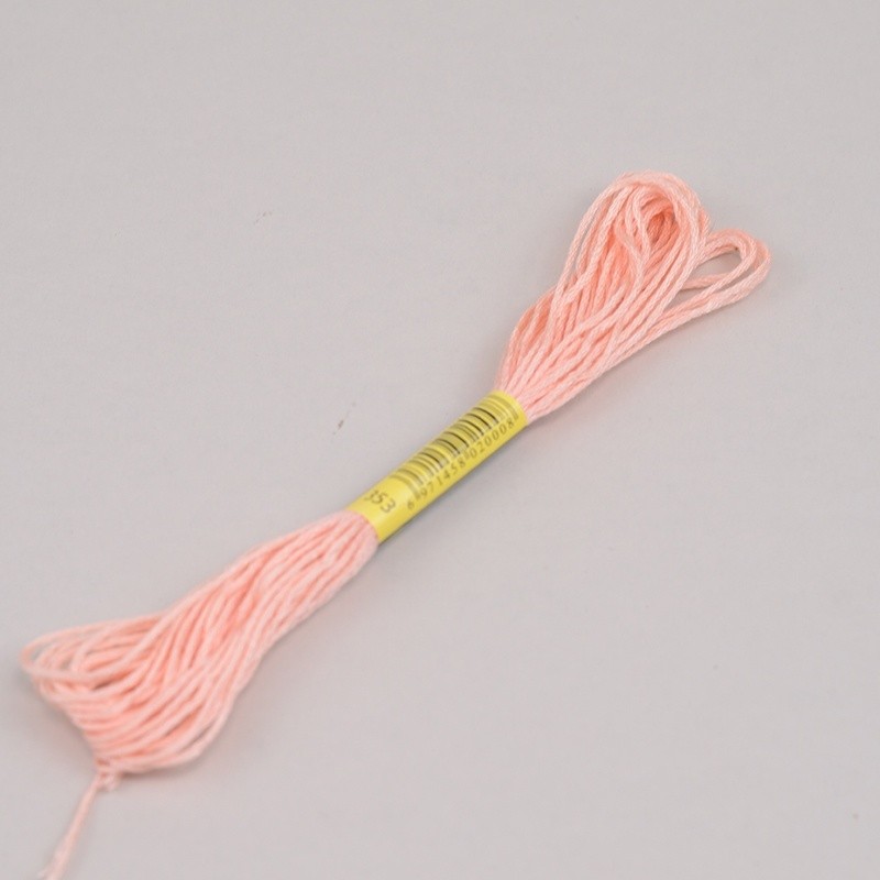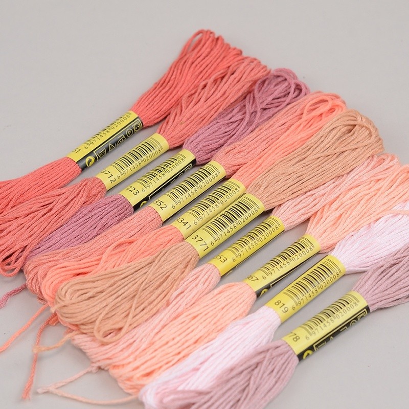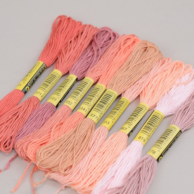 5 Skeins DMC Cross Stitch Thread - Light Pink 3341, Khaki 3771, Pink 353, Colors 967, 819 - Cotton Embroidery Thread for DIY, Student Crafts & Name Embroidery