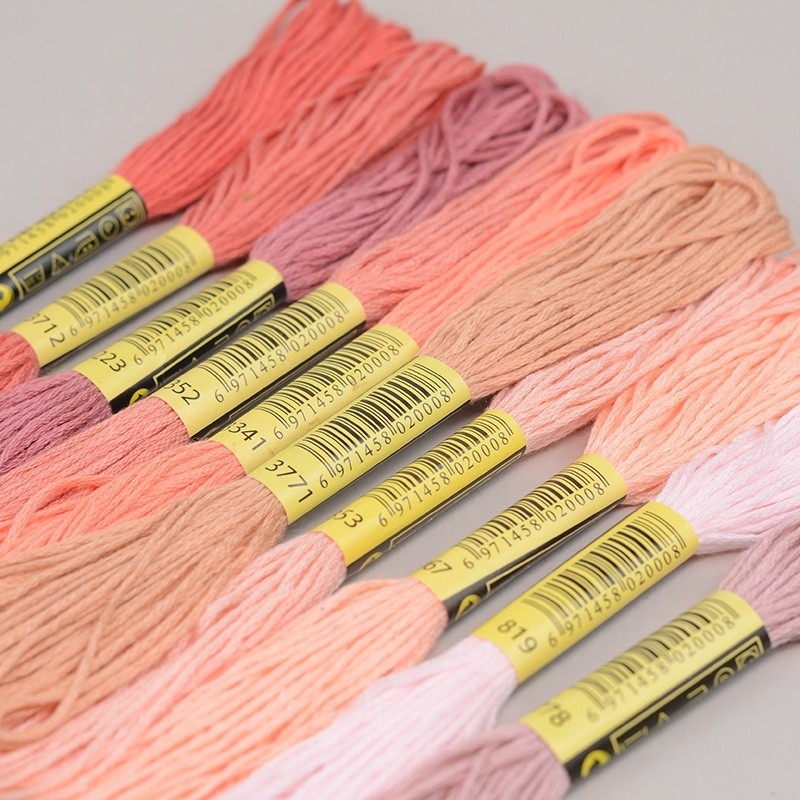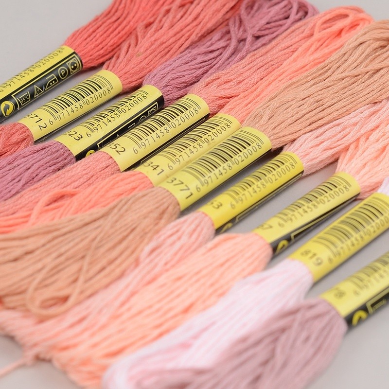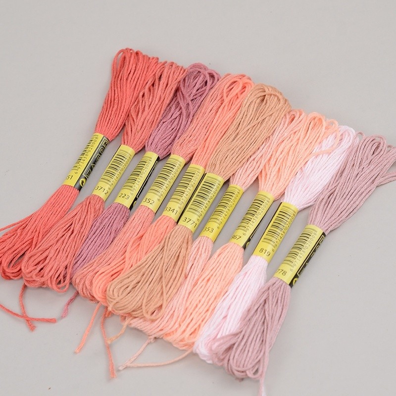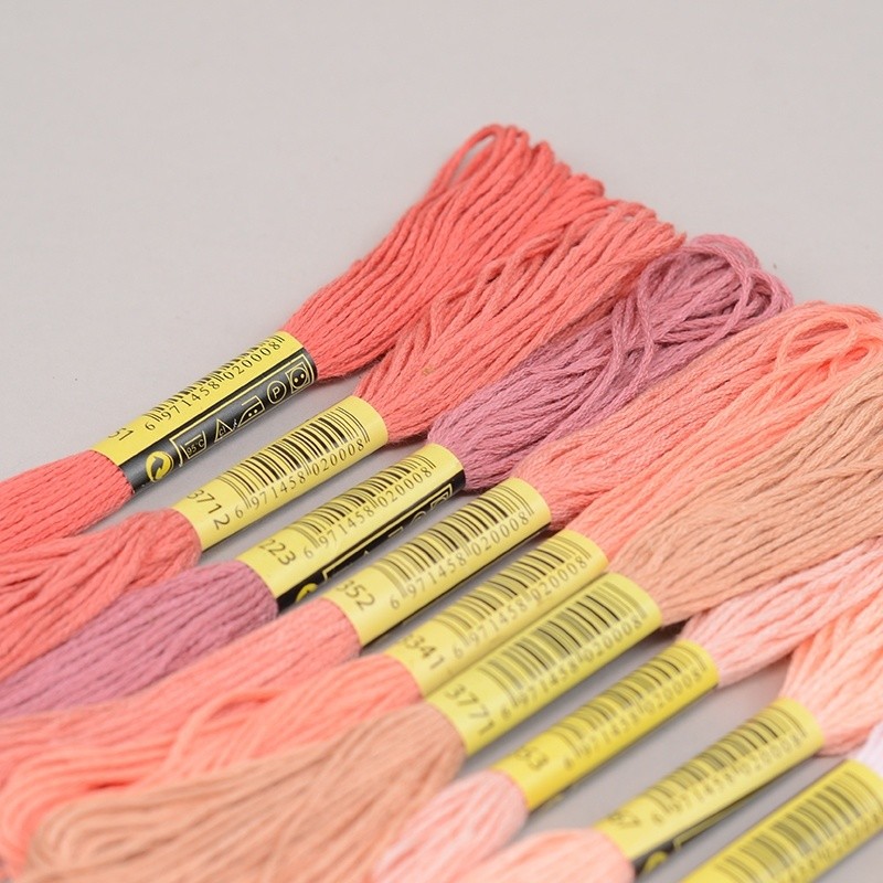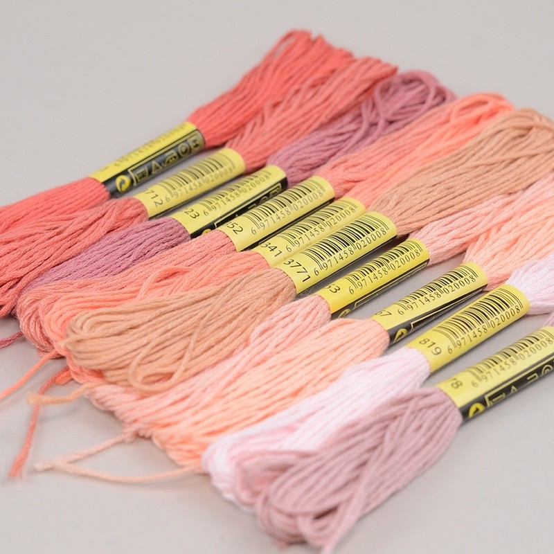 5 Skeins DMC Cross Stitch Thread - Light Pink 3341, Khaki 3771, Pink 353, Colors 967, 819 - Cotton Embroidery Thread for DIY, Student Crafts & Name Embroidery